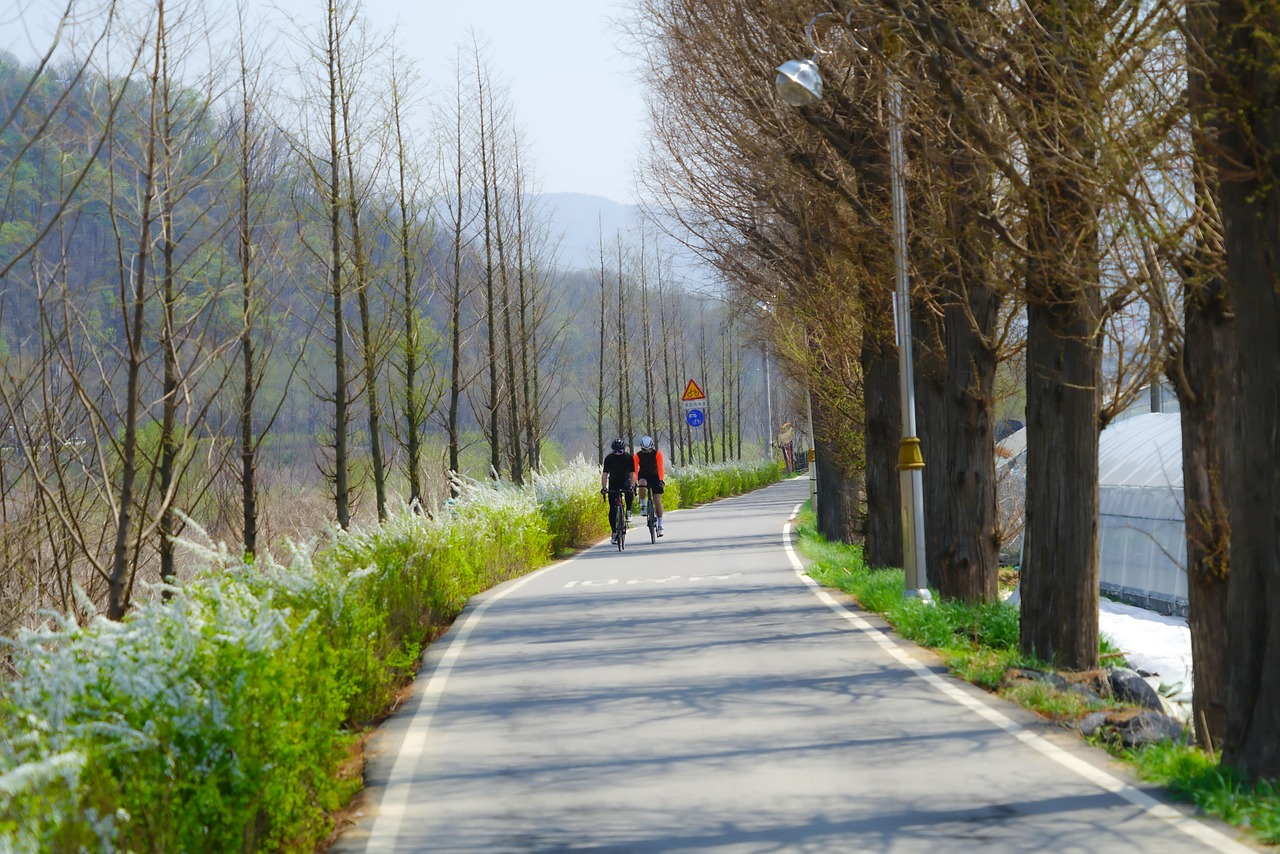 남대천을 따라 이어지는 자전거 도로는 강릉의 명물입니다. 자전거를 대여해 이팝나무길을 따라 달리며 꽃길을 통과하면, 마치 동화 속 주인공이 된 듯한 기분을 느낄 수 있습니다.