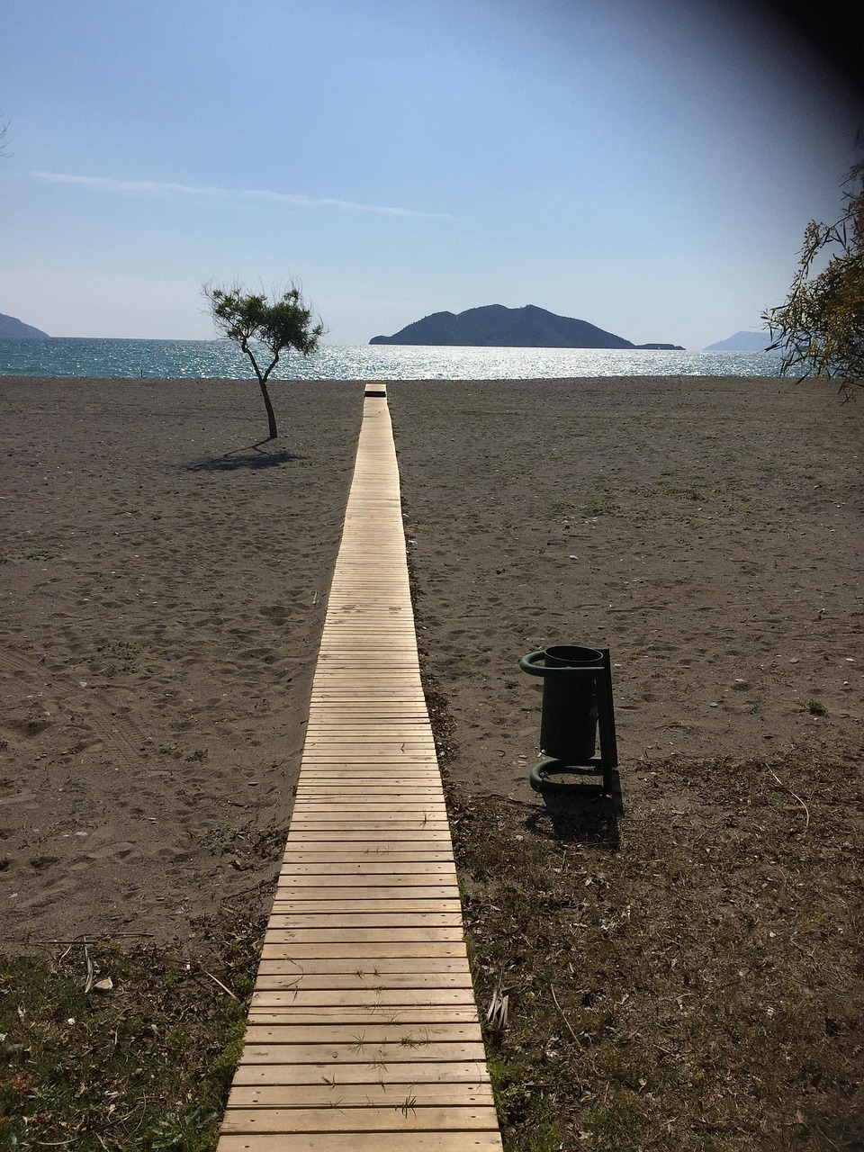 완만한 산책로는 해변에서 소나무 숲과 인근 마을 도로로 이어집니다.