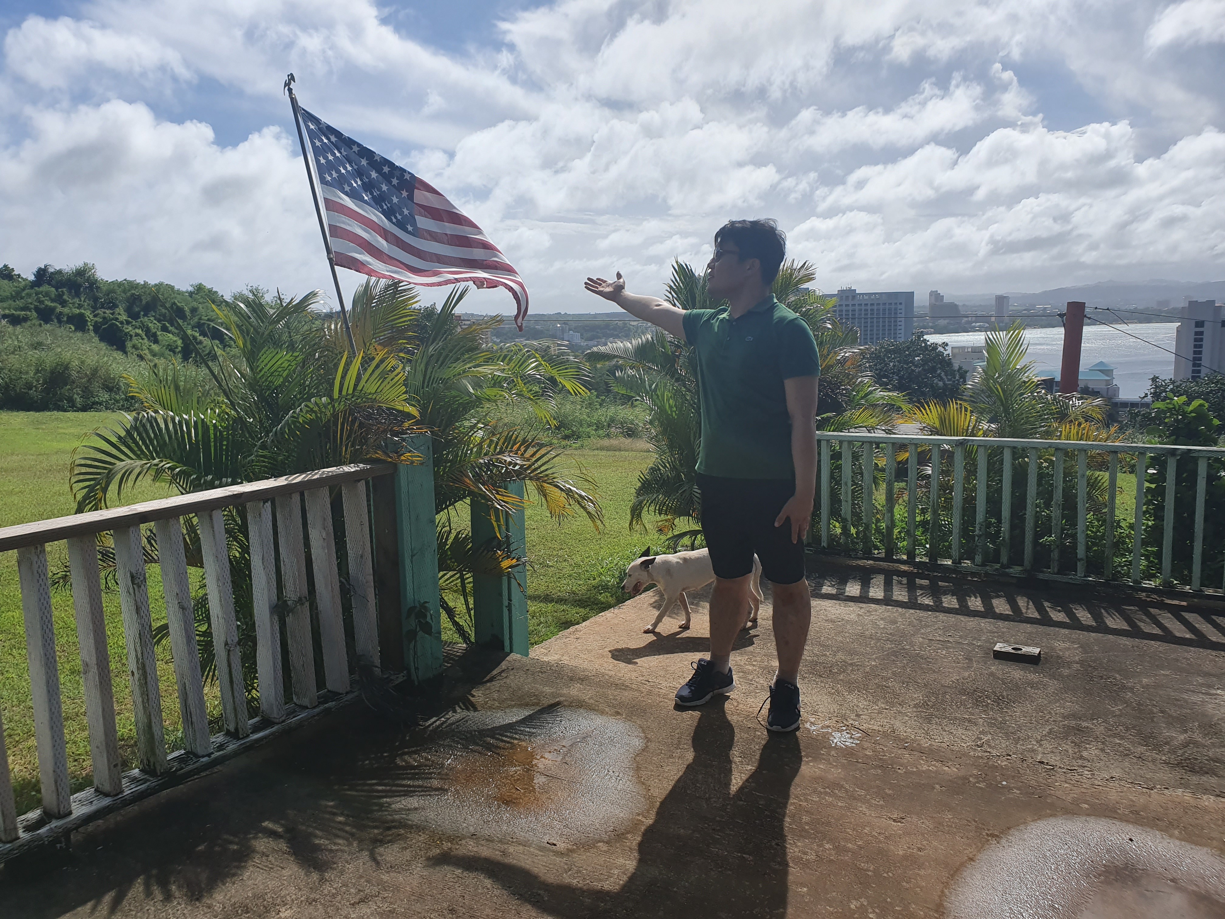 투어버스를 타고 정글 ATC투어로 도착해 성조기 옆에 사진한컷하기