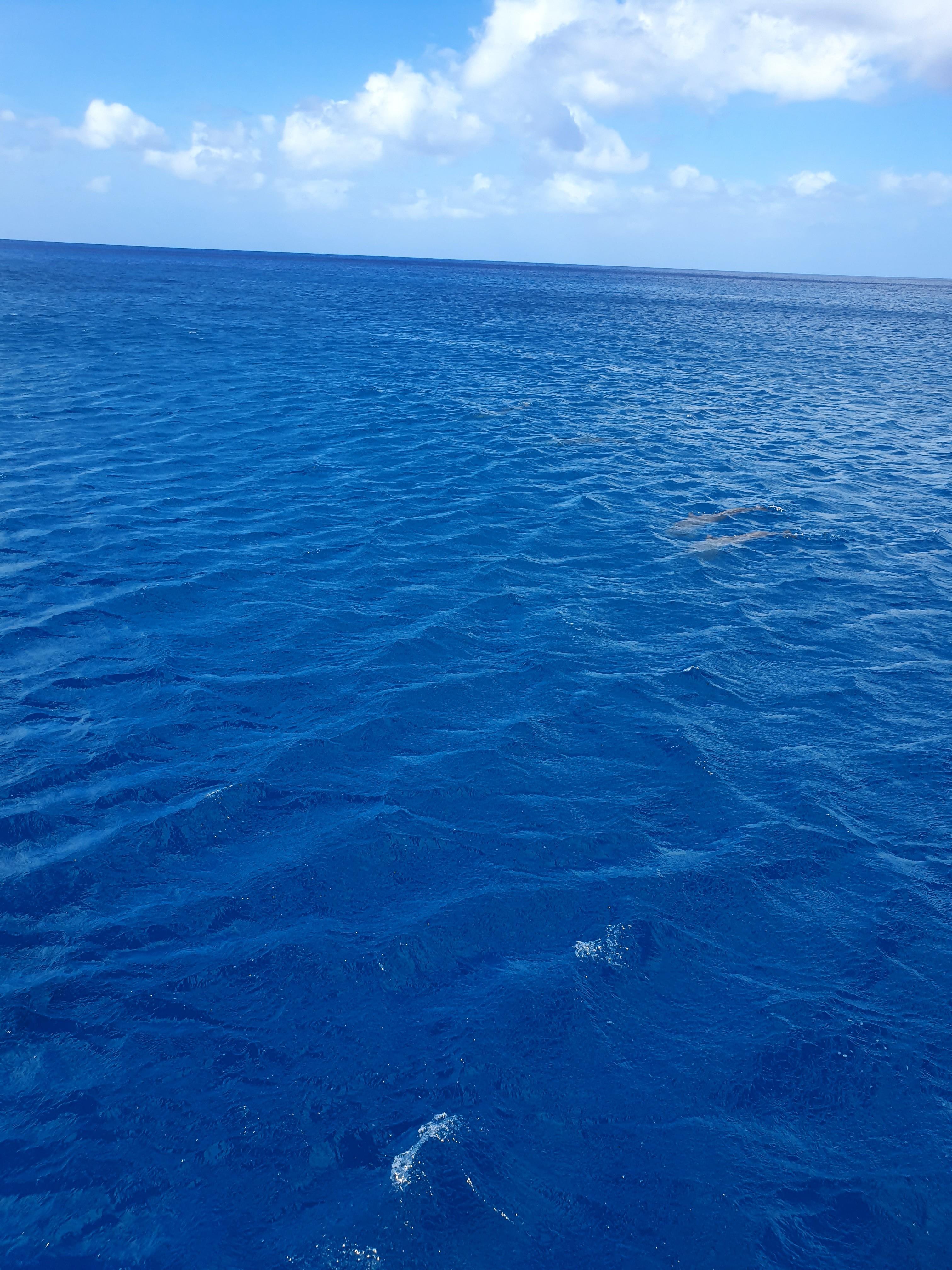 저먼 바다에는 돌핀들이 바다위에서 뛰놀고 있다,