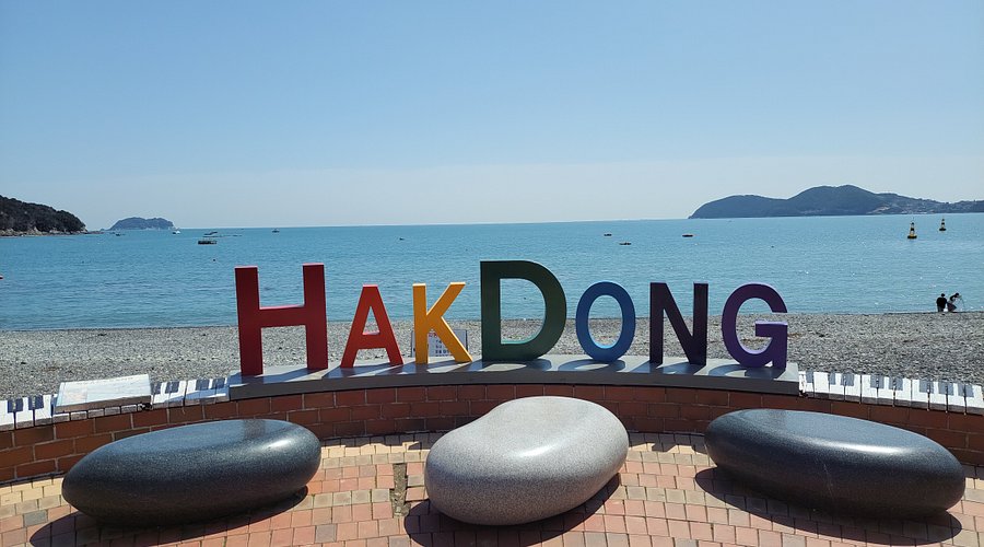 거제도 동부면 학동리에 위치한 **학동 흑진주 몽돌해변(Hakdong Mongdol Beach)**은 약 1.2km 길이와 50m 너비를 자랑하는 몽돌 해변입니다.