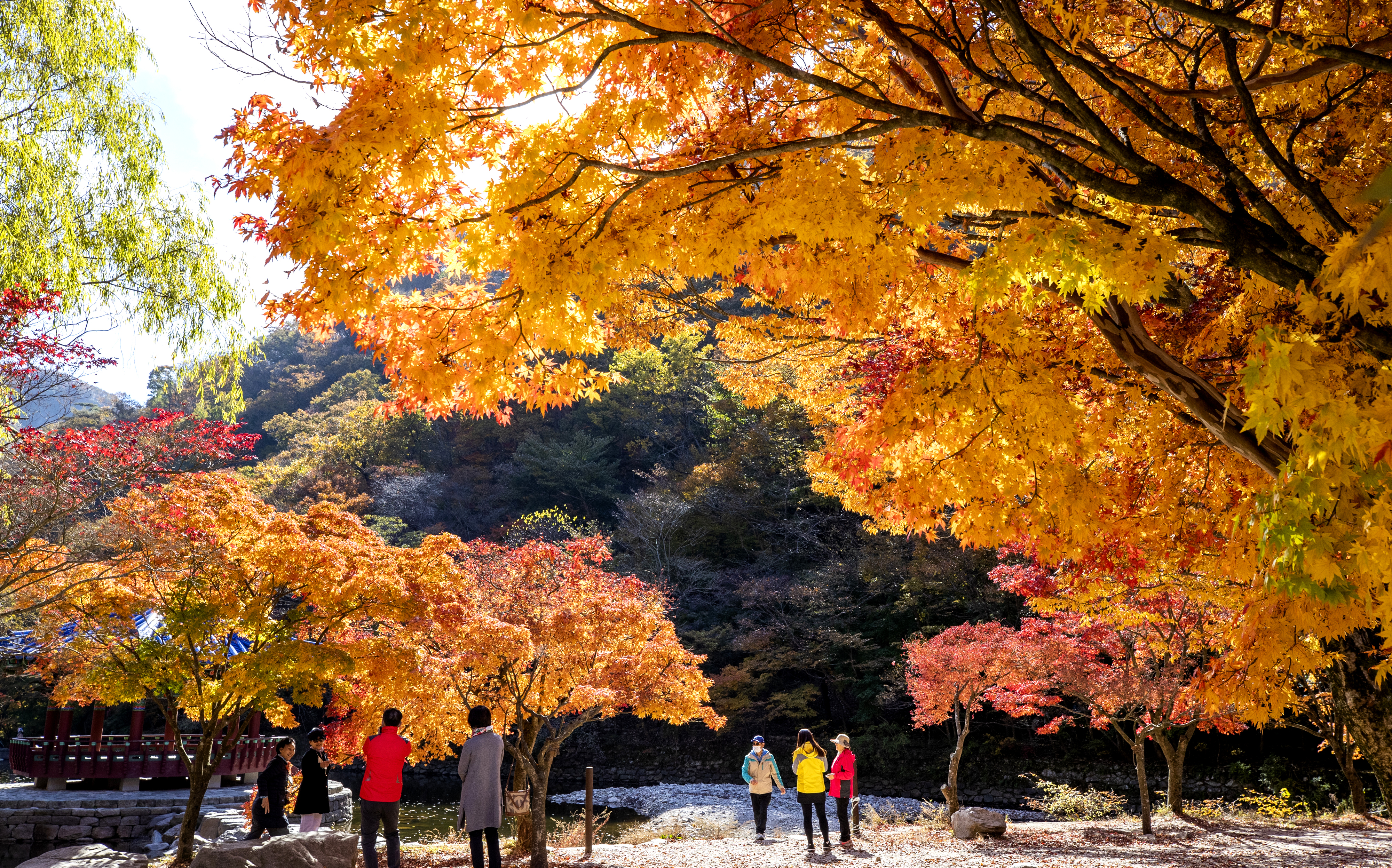 숲을 따라 흐르는 **Yongdae Valley (용대계곡)**와 단풍이 만들어내는 조화로운 풍경은 사진 명소로 인기입니다.