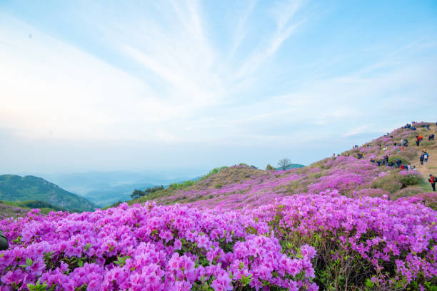 짧은 기간 동안 피는 벚꽃과 달리 철쭉은 개화 기간 이 약간 더 길어 방문객 이 몇 주 동안 아름다움 을 즐길 수 있습니다. 개화기 천주산의 철쭉은 일반적으로 강수량 조건에 따라 4 월 초순에서 중순 사이에 만개합니다. 방문하기 가장 좋은 시기는 청주산 철쭉 축제 기간으로, 꽃 이 절정에 달하고 산은 감동적인 장식을 즐기는 방문객으로 가득합니다. 멋진 전망과 사진 촬영 기회 청주산 철쭉 능선은 꽃을 구경하기 에 가장 악명 높은 곳입니다. 이 끝 지점에서 분홍색과 화려한 꽃으로 뒤덮인 끝없는 구릉을 볼 수 있습니다.