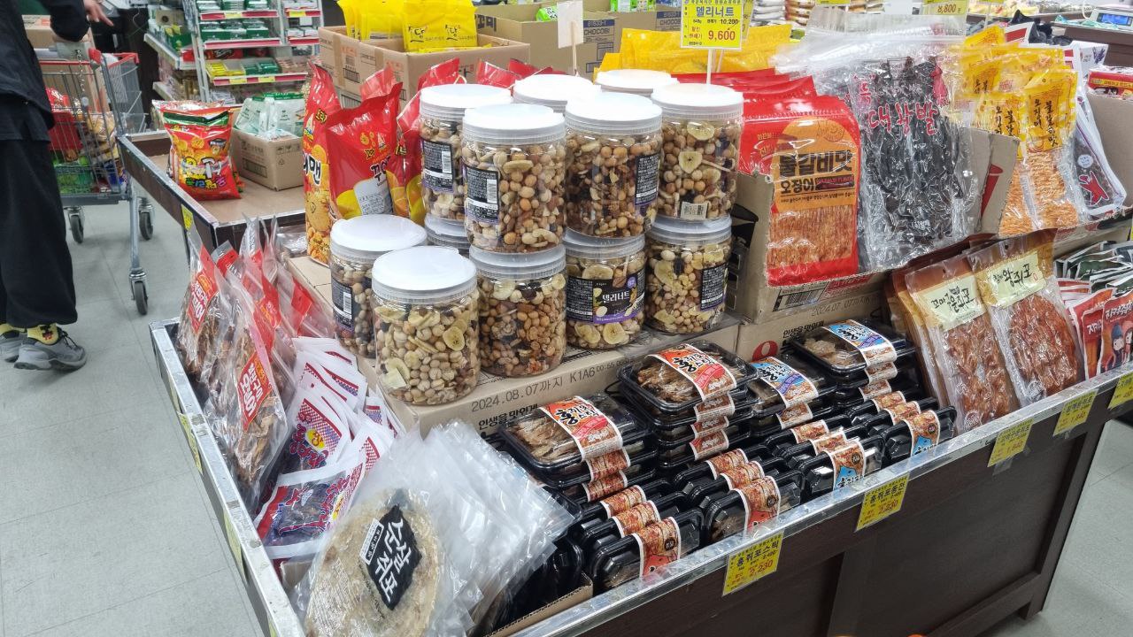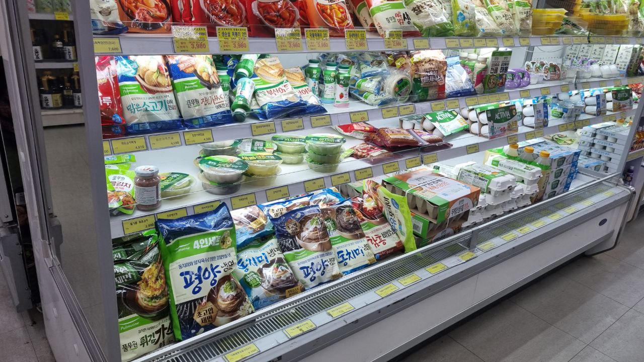 그리고 반찬거리, 과일, 육류, 과자, 유제품,음료, 주류들이 많이 구비되어 있습니다.