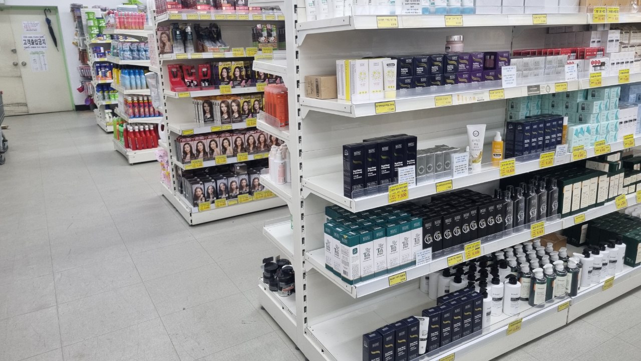 안에 들어가보니 디퓨저, 화장품, 샴푸, 폼클랜징, 염색약등이 구비되어 있습니다.