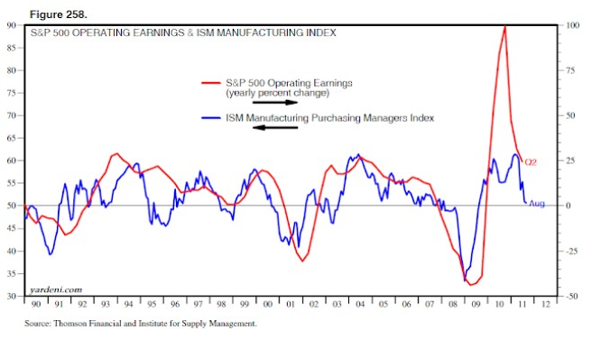 또한 ISM 제조업 구매관리자 지수는 앞의 그림처럼 전년 동기대비 기업 이익 증가율과 거의 궤적이 일치한다. 따라서 ISM 제조업 구매관리자 지수가 상승 추세인지, 하락 추세인지, 절댓값이 50 초과이지, 50 미만인지 여부만 살펴봐도 미국 경기과 기업 이익의 흐름을 짐작할 수 있게 해준다.
