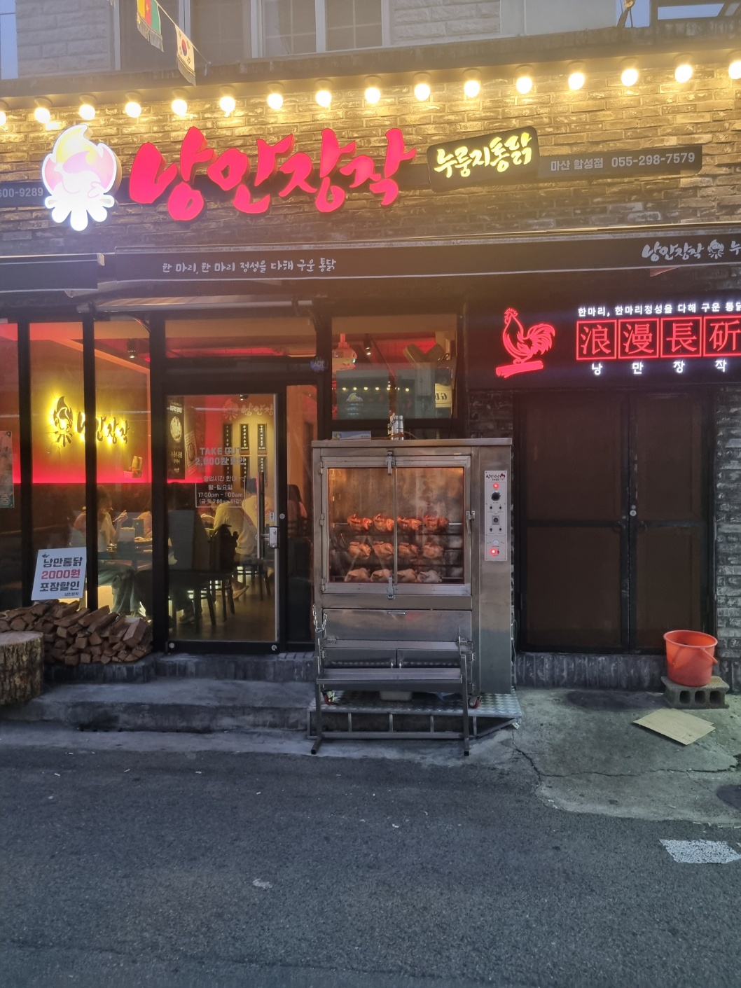 합성동 뒷길에 자리를 잡고 있으며, 국내산 닭을 2시간 동안에 구워낸 후 쌀을 닭밑에 두어서 누룽지랑 같이 먹을 수 있는 통닭집입니다.