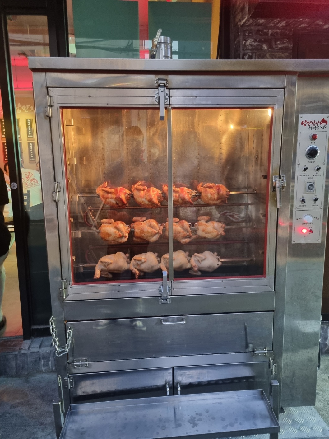가게 앞에는 통닭이 구워지는 장면 ,,,,