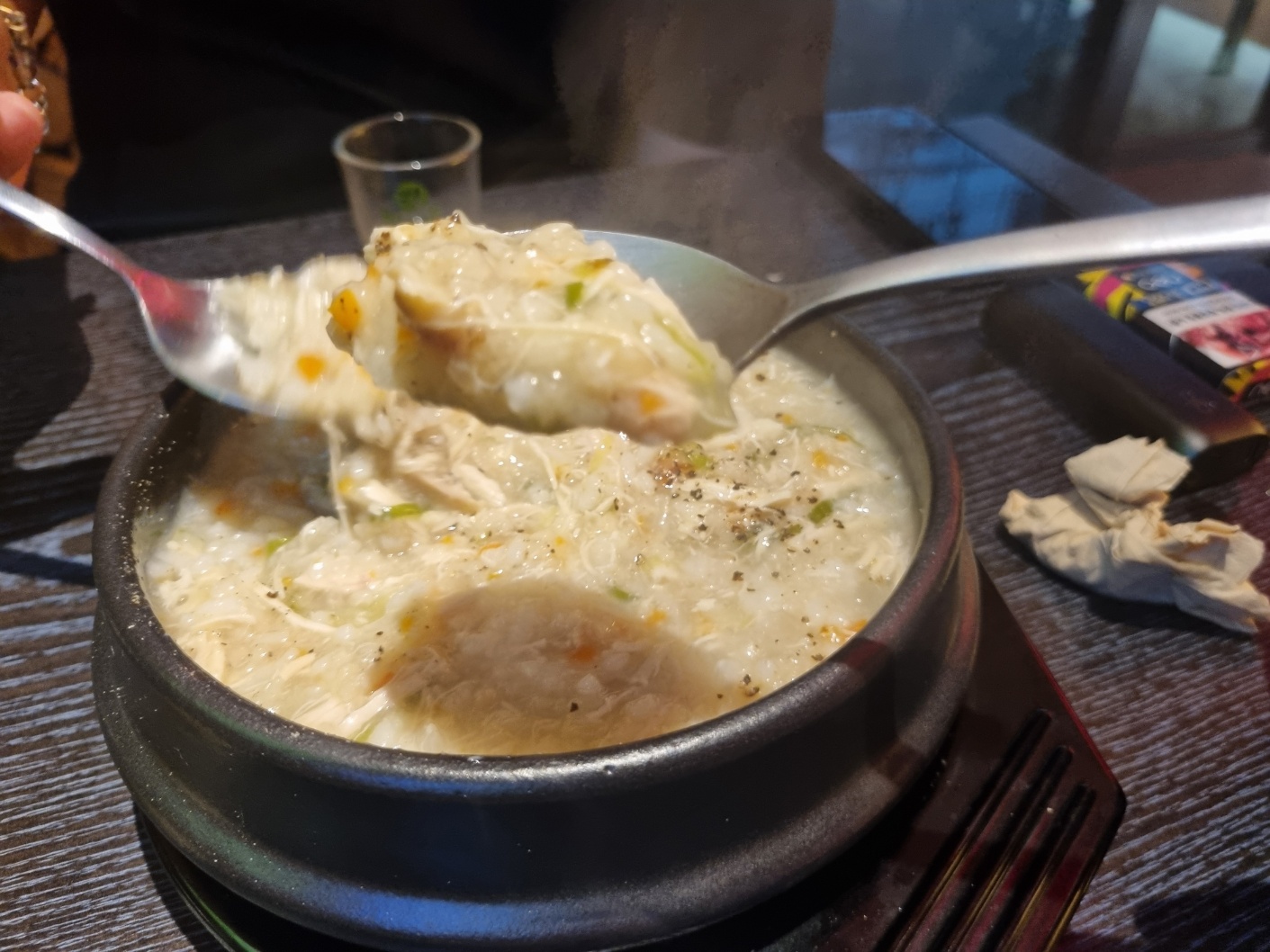 마늘얼큰이 반반메뉴와 닭죽을 시켰습니다.