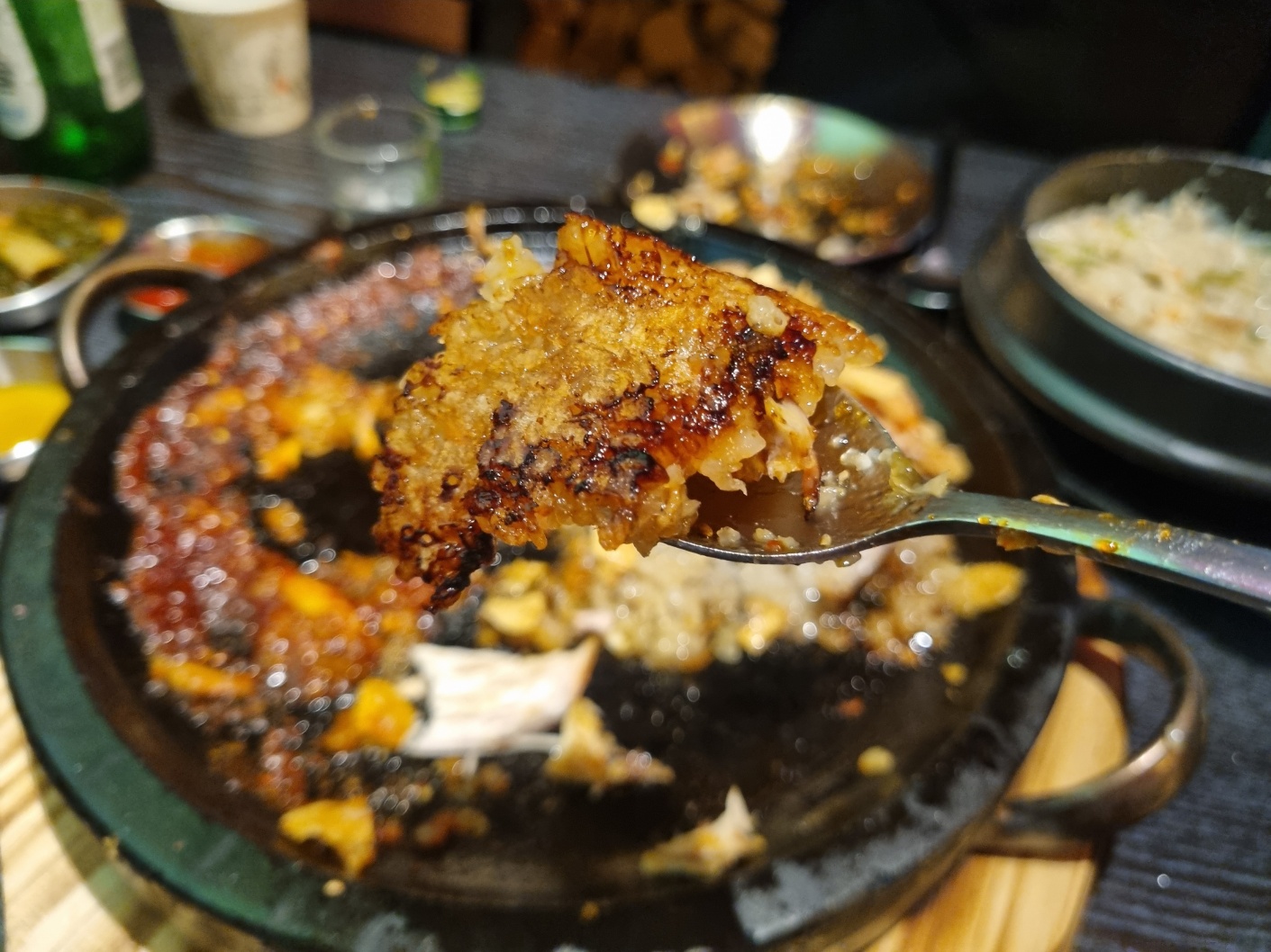 닭먹은후 밑에 깔린 누룽지까지 시식