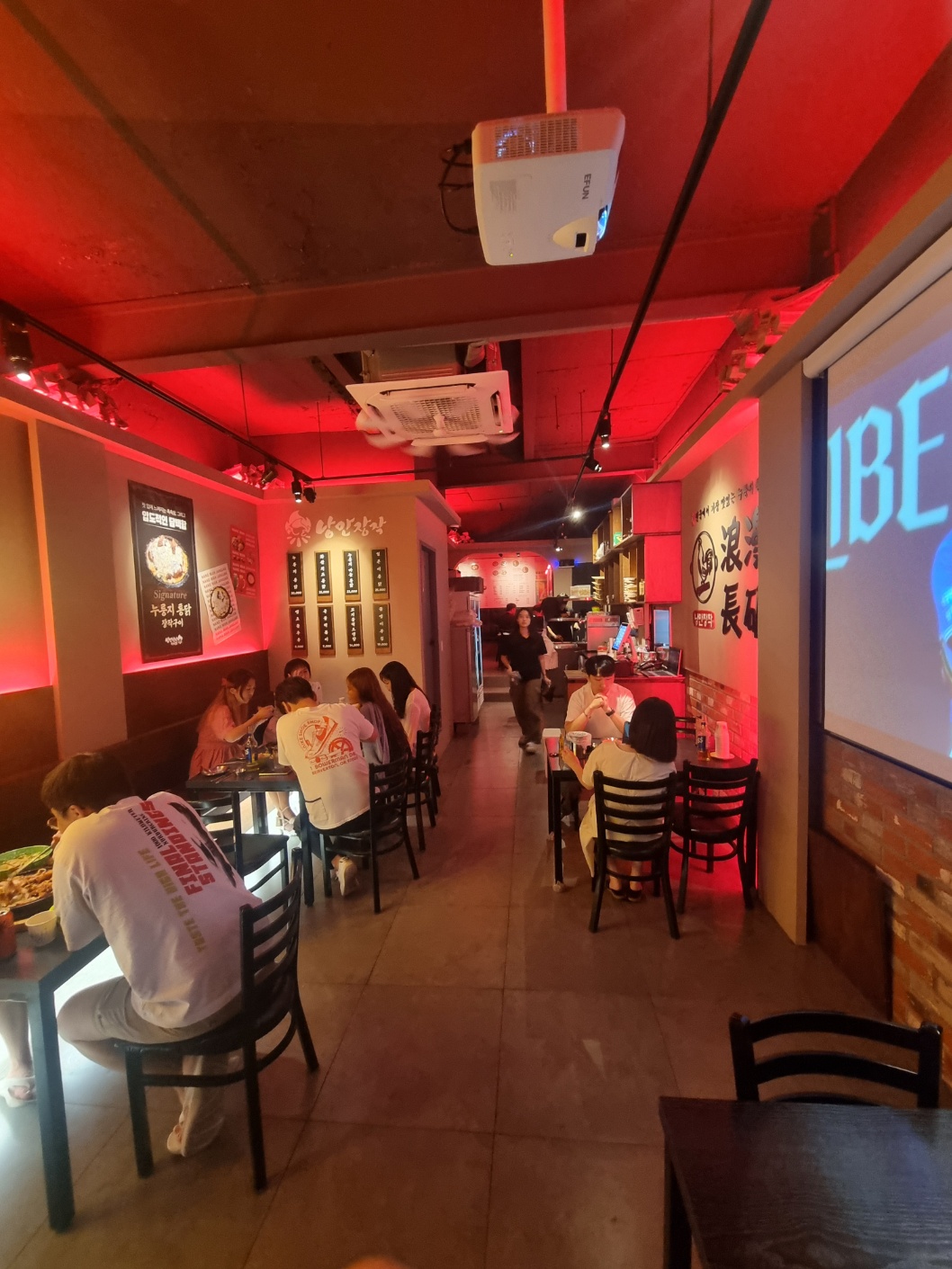 내부로 들어가보니 가게는 좁게 보이지만 안쪽까지 많은 자리가 있고, 스크린도 있고 불빛도 있어 친구들, 모임하기 좋은 공간입니다
