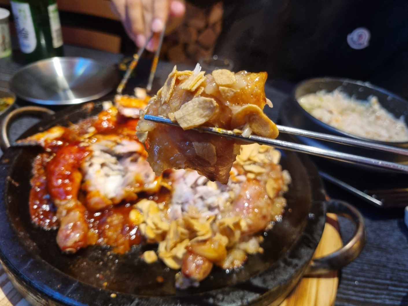얼큰이 통닭은 새콤하면서 매콤했고,
