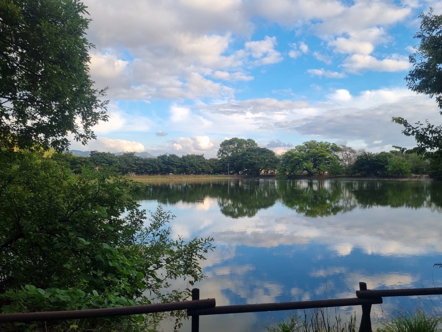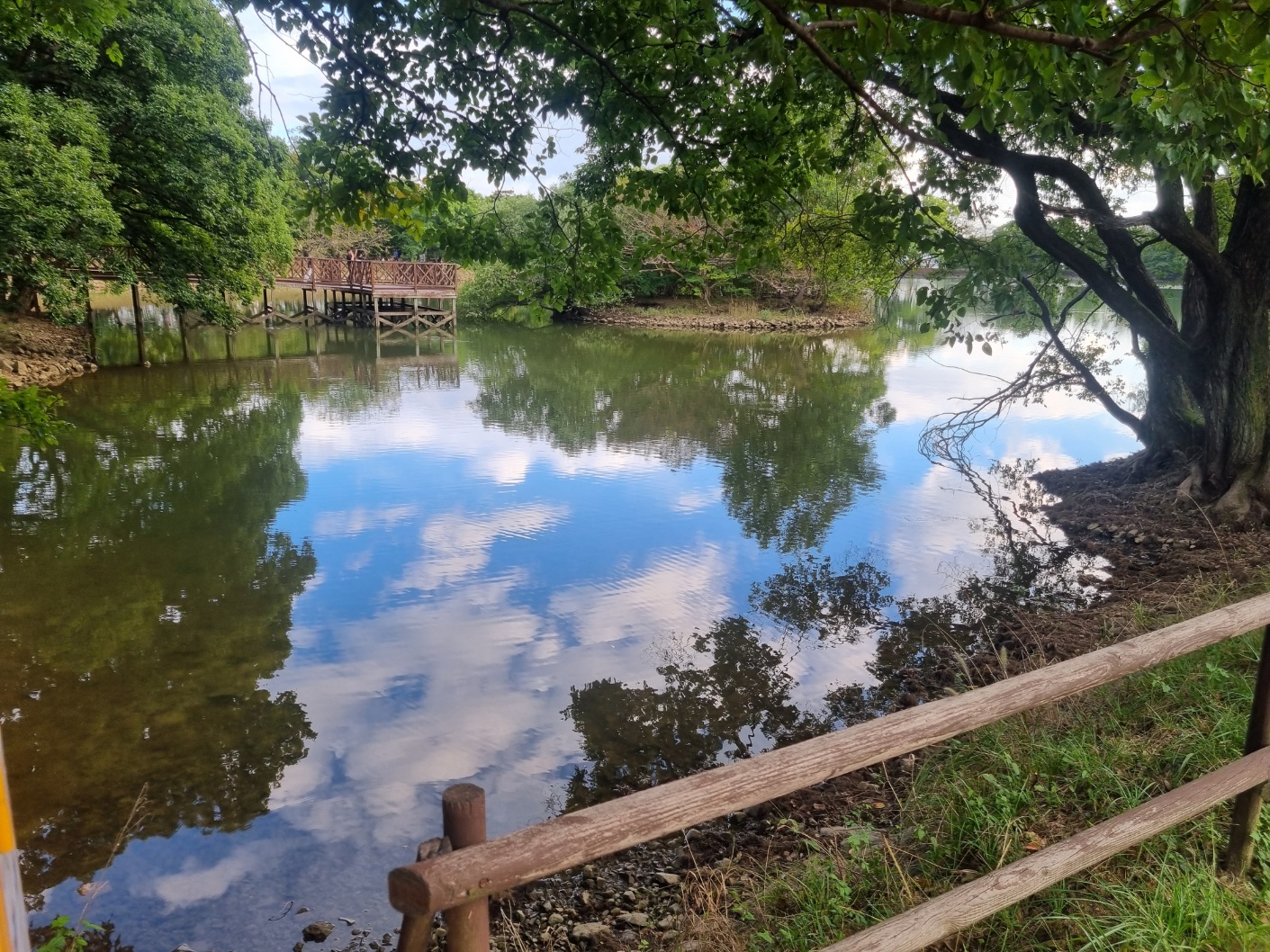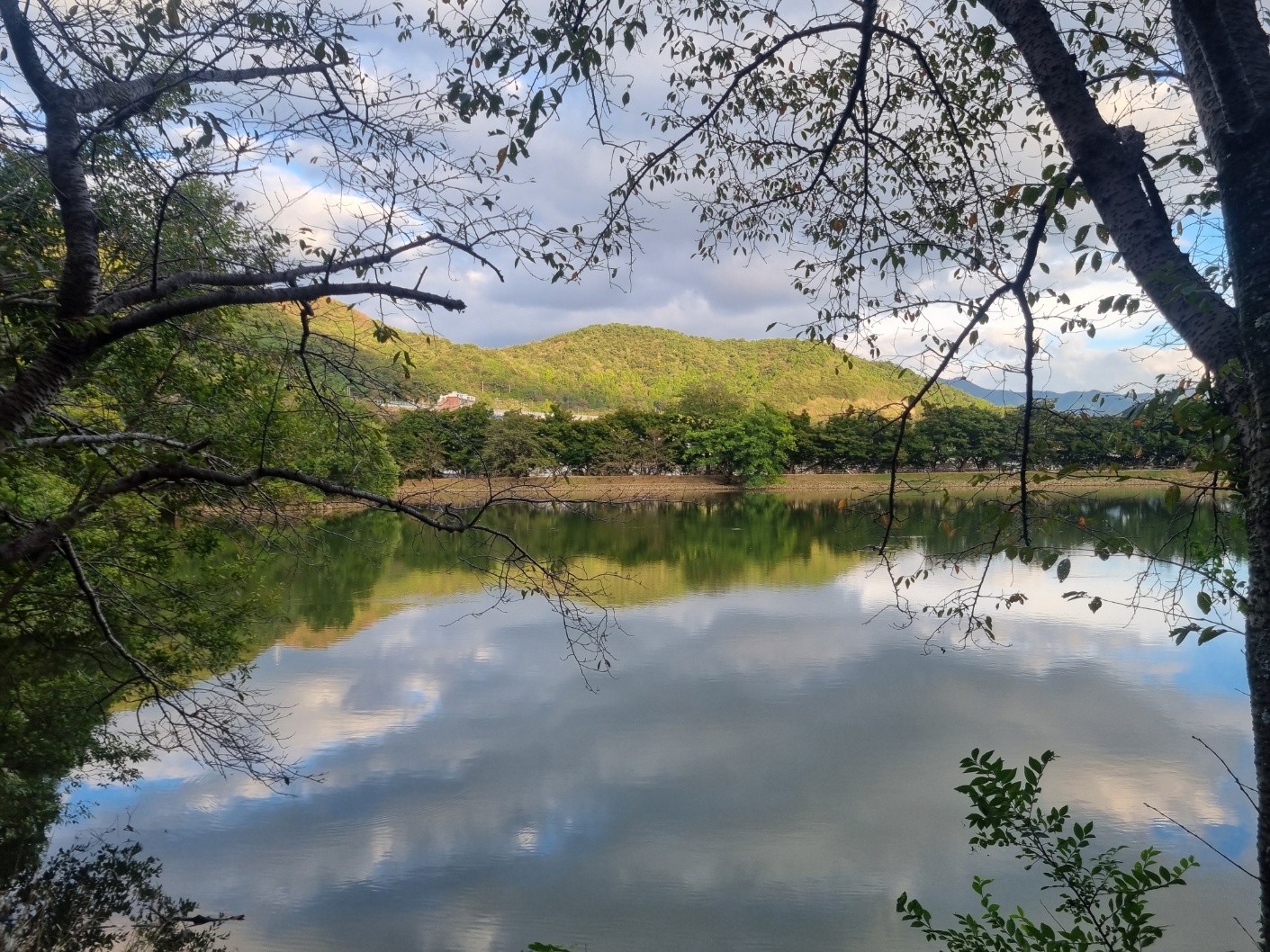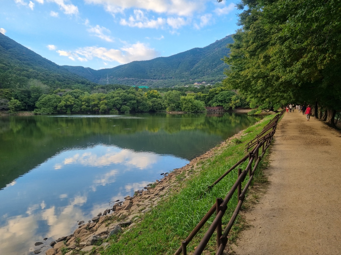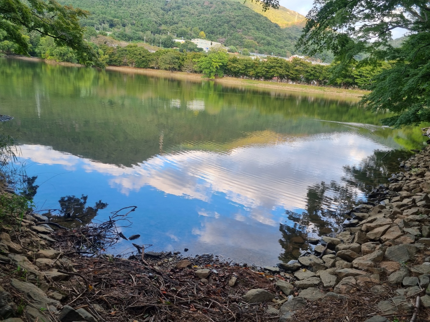 산책이 시작하는 시점에 넓은 저수지가 눈에 보인다.
