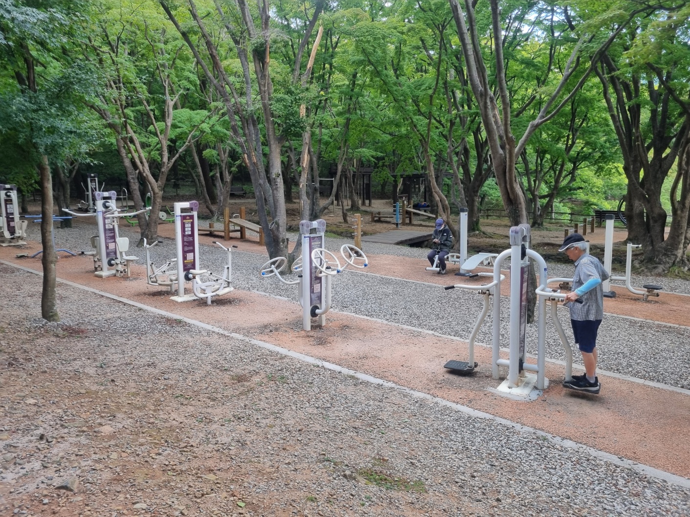중간 지점에 운동기구들이 있다.