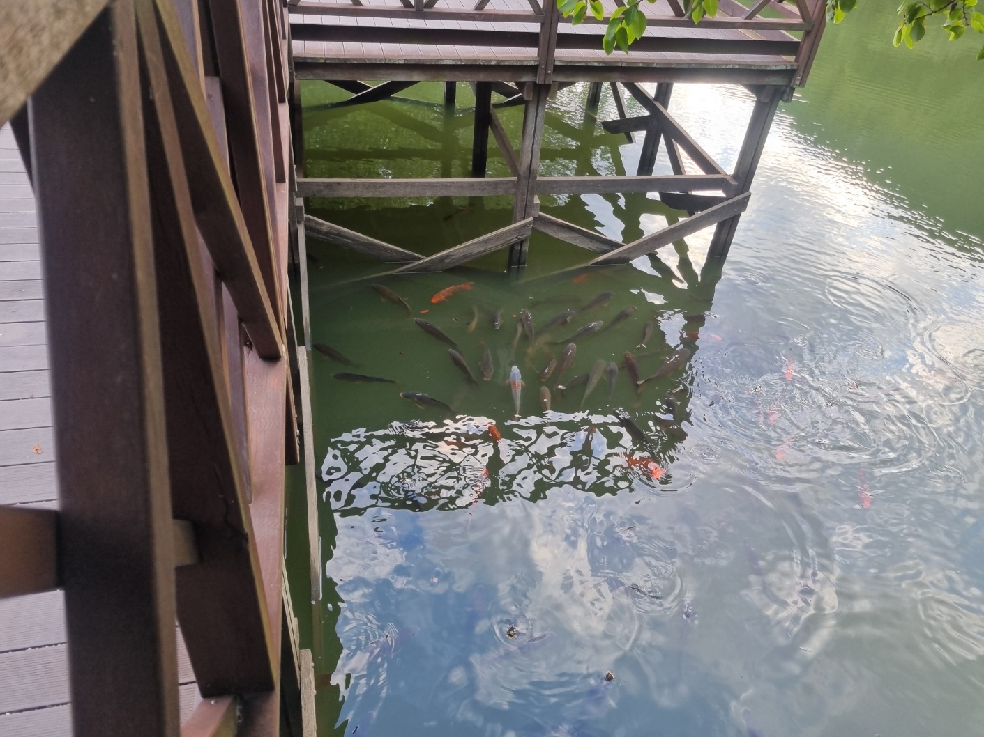 끝지점에는 다리와 셀수 없는 물고기들이 평화롭게 놀고 있는 모습들 ,,,