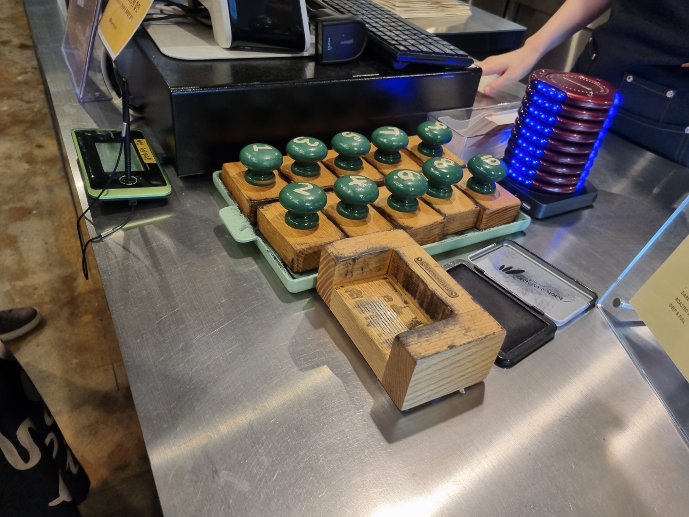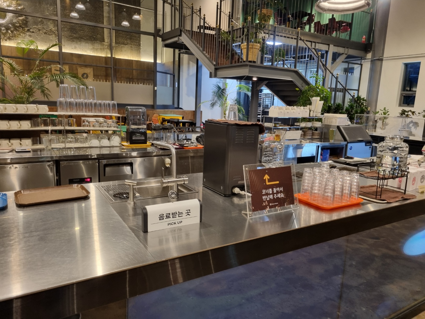 이제 커피를 마시기 위해 카운터에 도착해 밀크티를 시켰다.