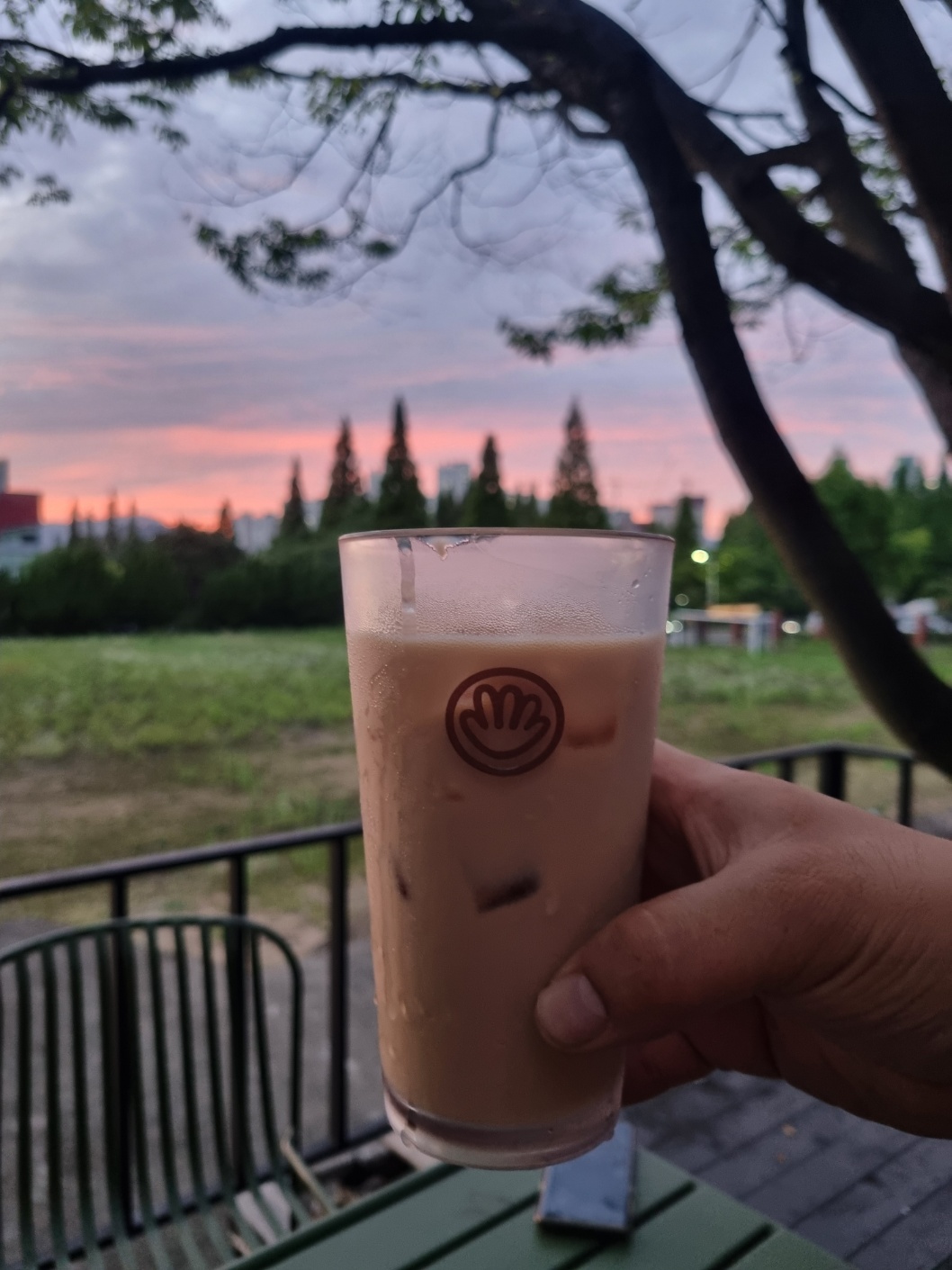 해질녁에 테라스에 나와서 노을 풍경을 보면서 밀크티 한잔 ㅋ