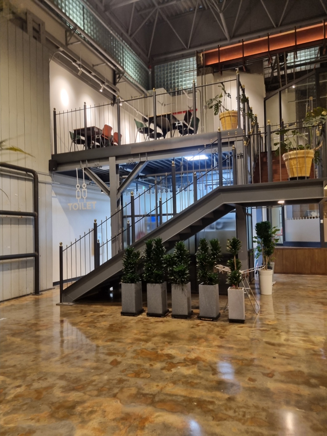 1층에 넓고 많은 좌석과 2층에 자리가 있습니다.