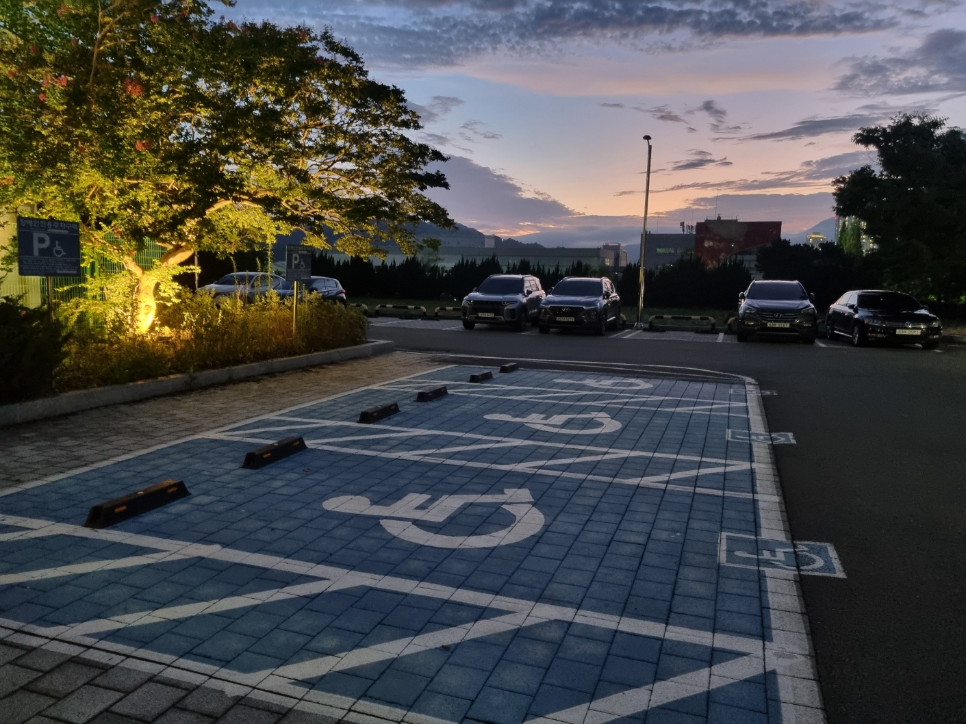 카페 도착해서 주차하고 나서,, 주변에 주차시설도 많고 장애인 주차 시설이랑 전기차 충전소가 있습니다.