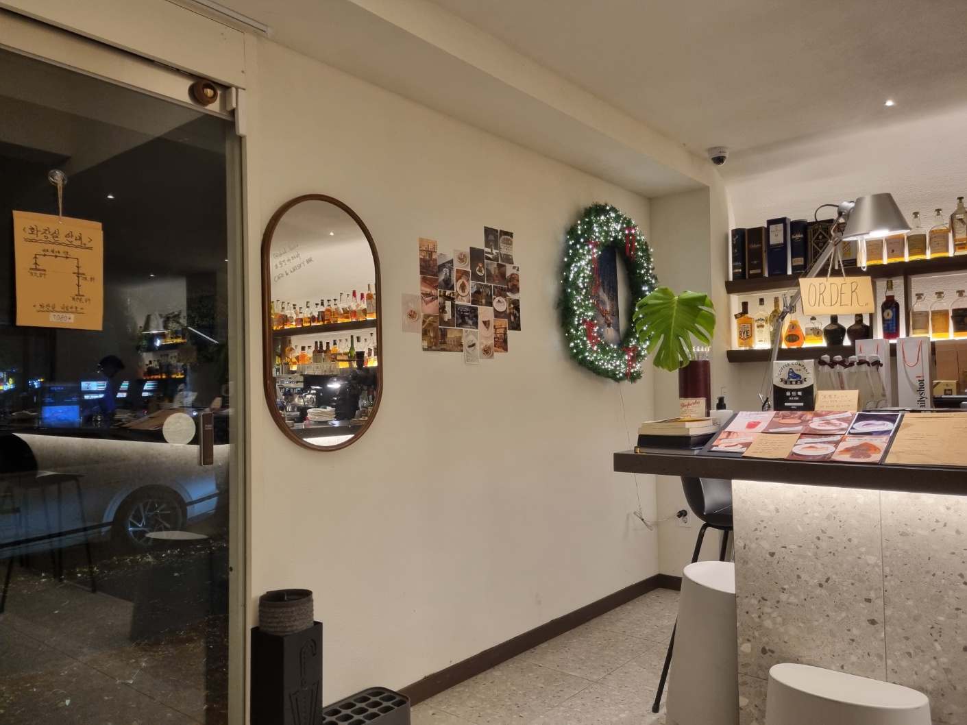 내부로 들어가보니 넓은 테이블이 자리가 잡혀 있고, 바텐더형 테이블이 구비되어 있어 혼자와도 같이 와도 이용하기 좋은 곳이며, 아메리칸풍 바텐더 분위기로 되어 있고, 위스키가 카운터에 배열이 되어 있습니다.
