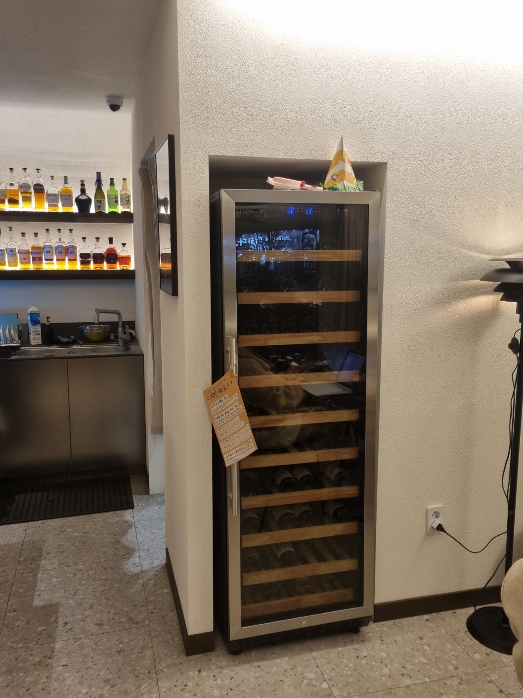 오른쪽에 가면 와인 냉장고가 있고, 왼쪽에는 주문을 할수 있는 주문코너가 있다.