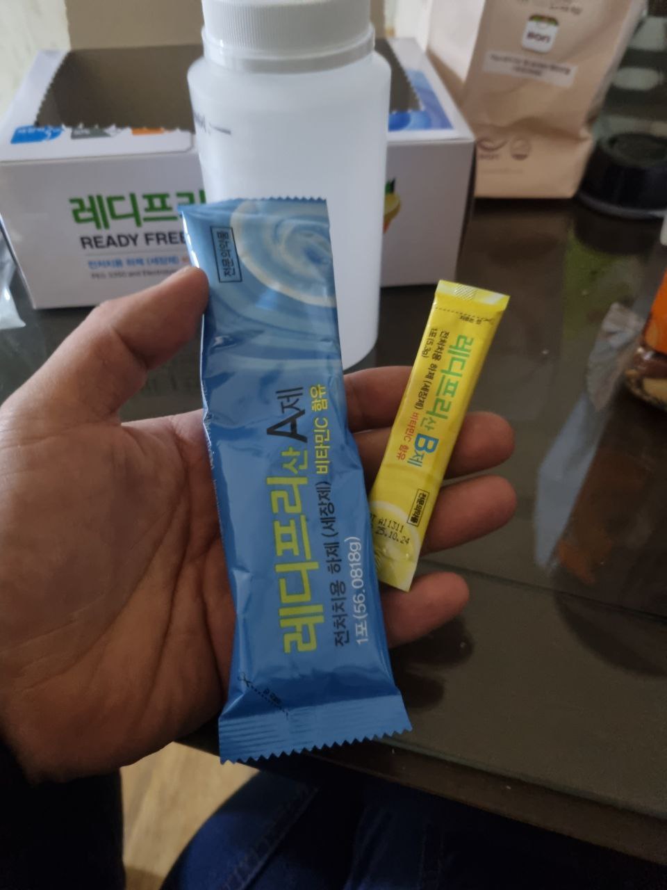 다음날 7시에 기상하여 전날과 같이 2번 똑같이 약타고 마시고