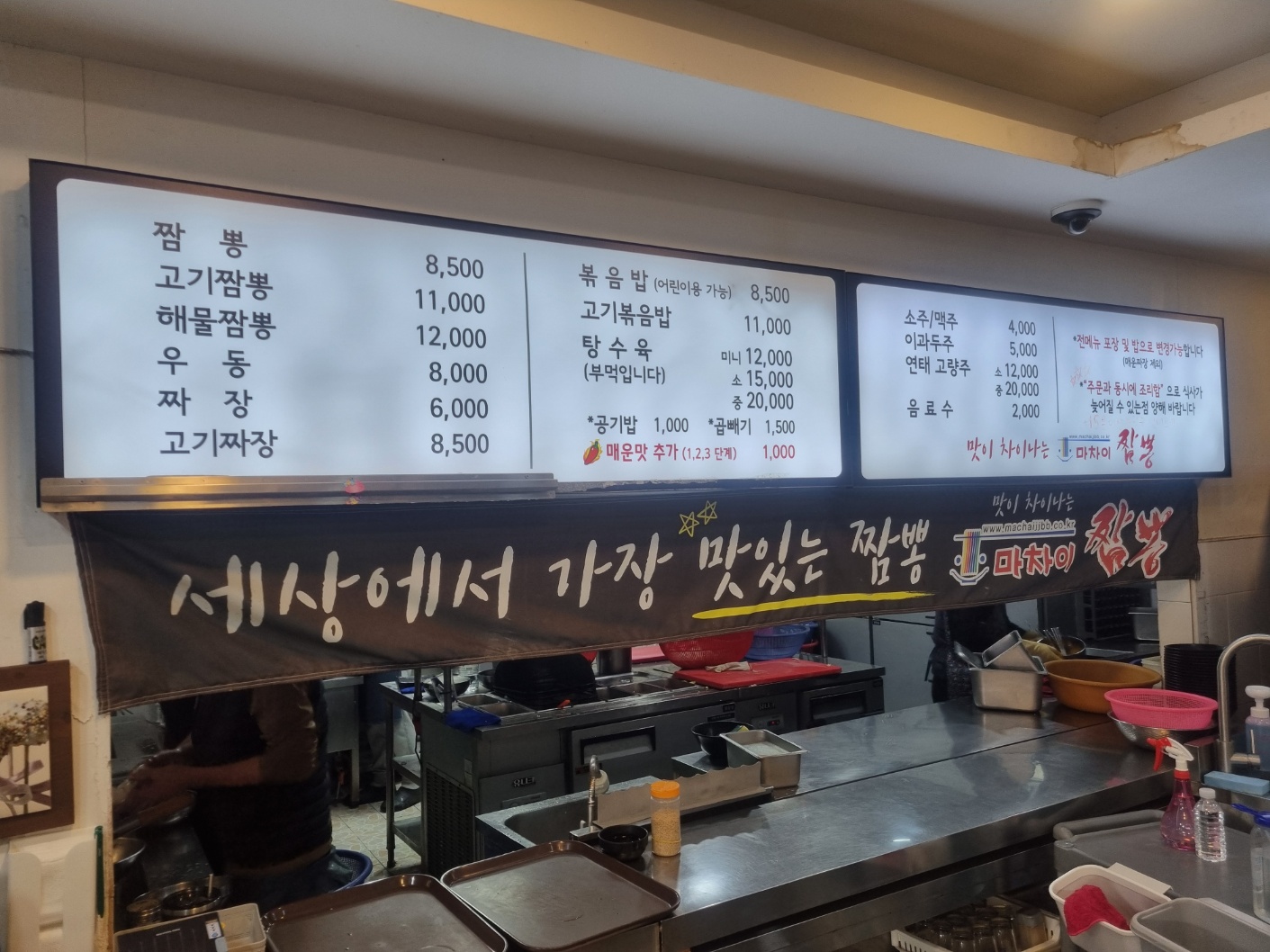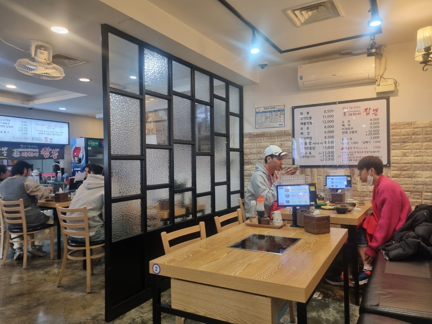 넓은 테이블도 있고, 1인좌석도 있고 단체이용이 가능한 좌석이 있습니다. 이 짬뽕집에 대표메뉴는 "고기짬뽕", "해물짬뽕"이 대표적인 메뉴 입니다.