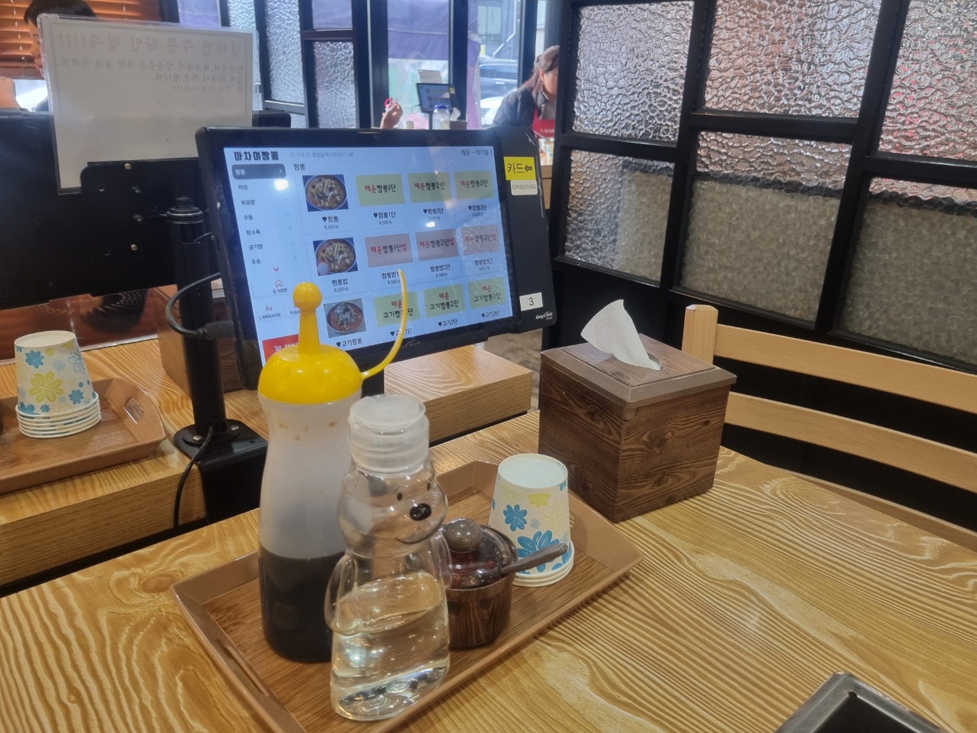 각 테이블에는 키오스크가 있어 주문을 편리하게 할수 있다.