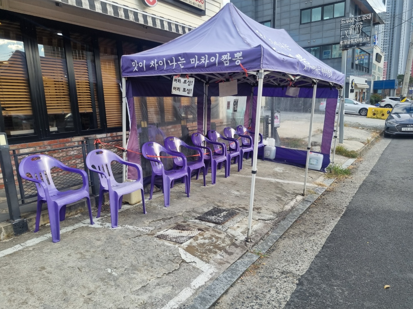 가게앞에는 사람이 만석일시 번호표 받아서 대기할수 있게 대기석이 있고, 그 옆에 작은 주차장이 있다. 주차자리가 협소하면 근처에 주택가에도 주차가 가능하다.