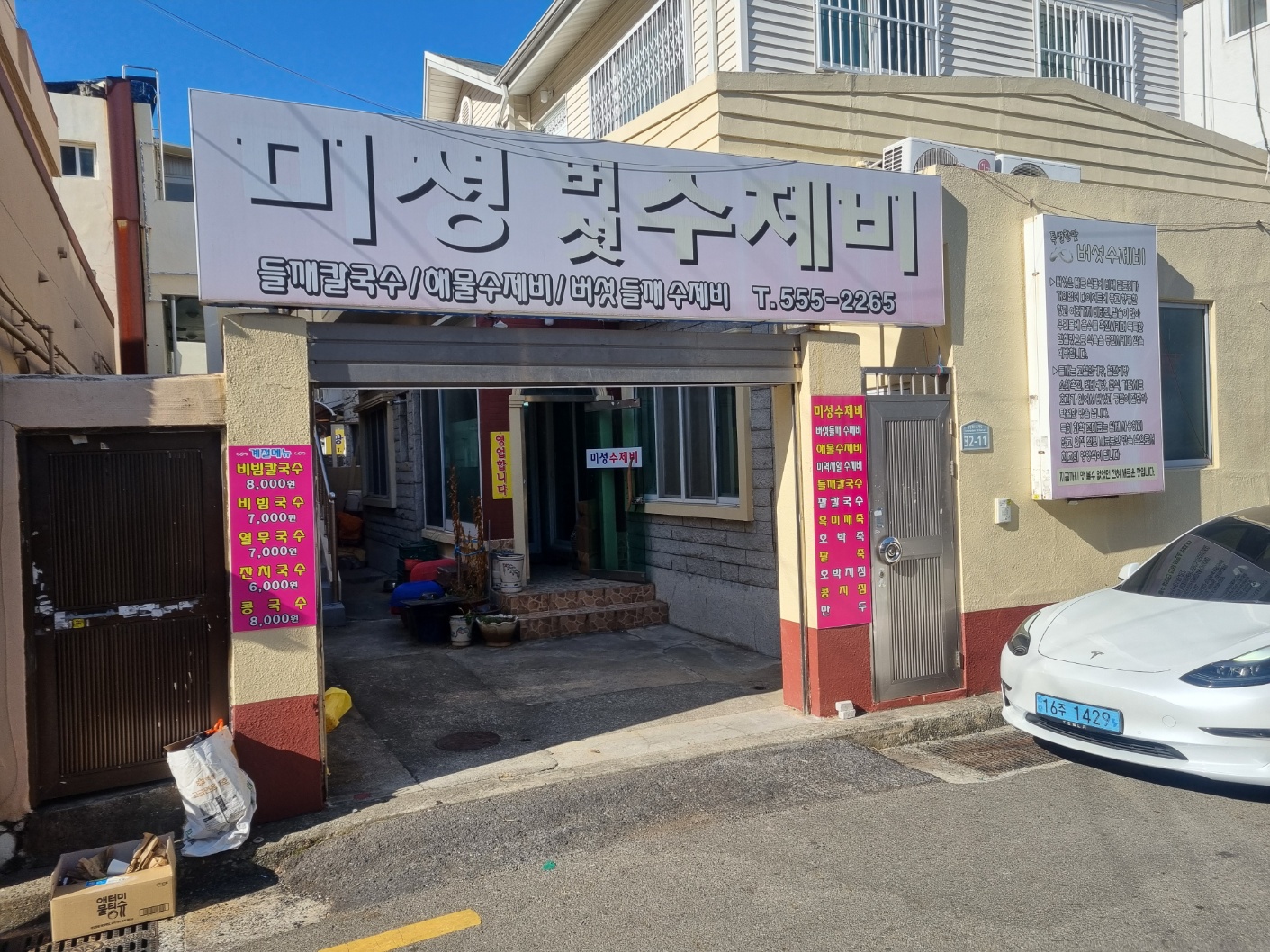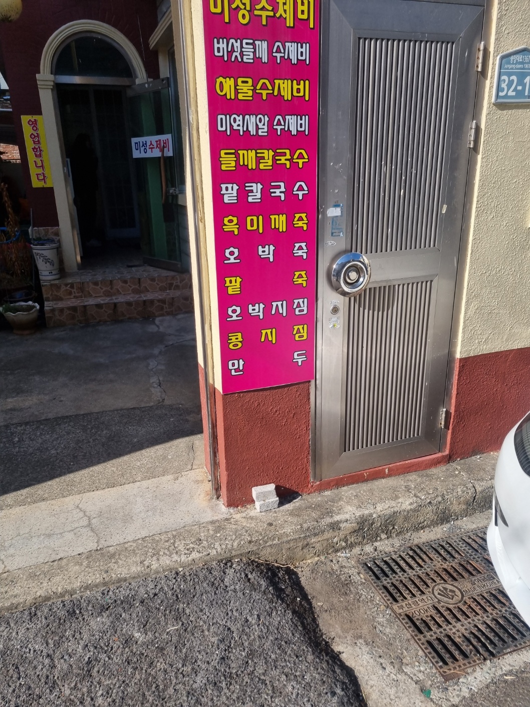 미성버섯수제비 근처에 주차를 하고나서 가게에 도착했다.