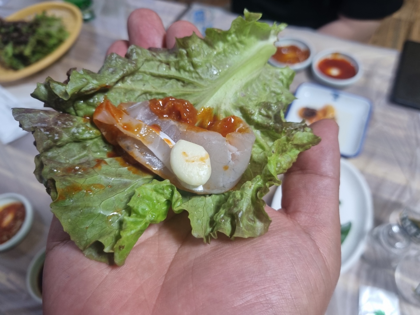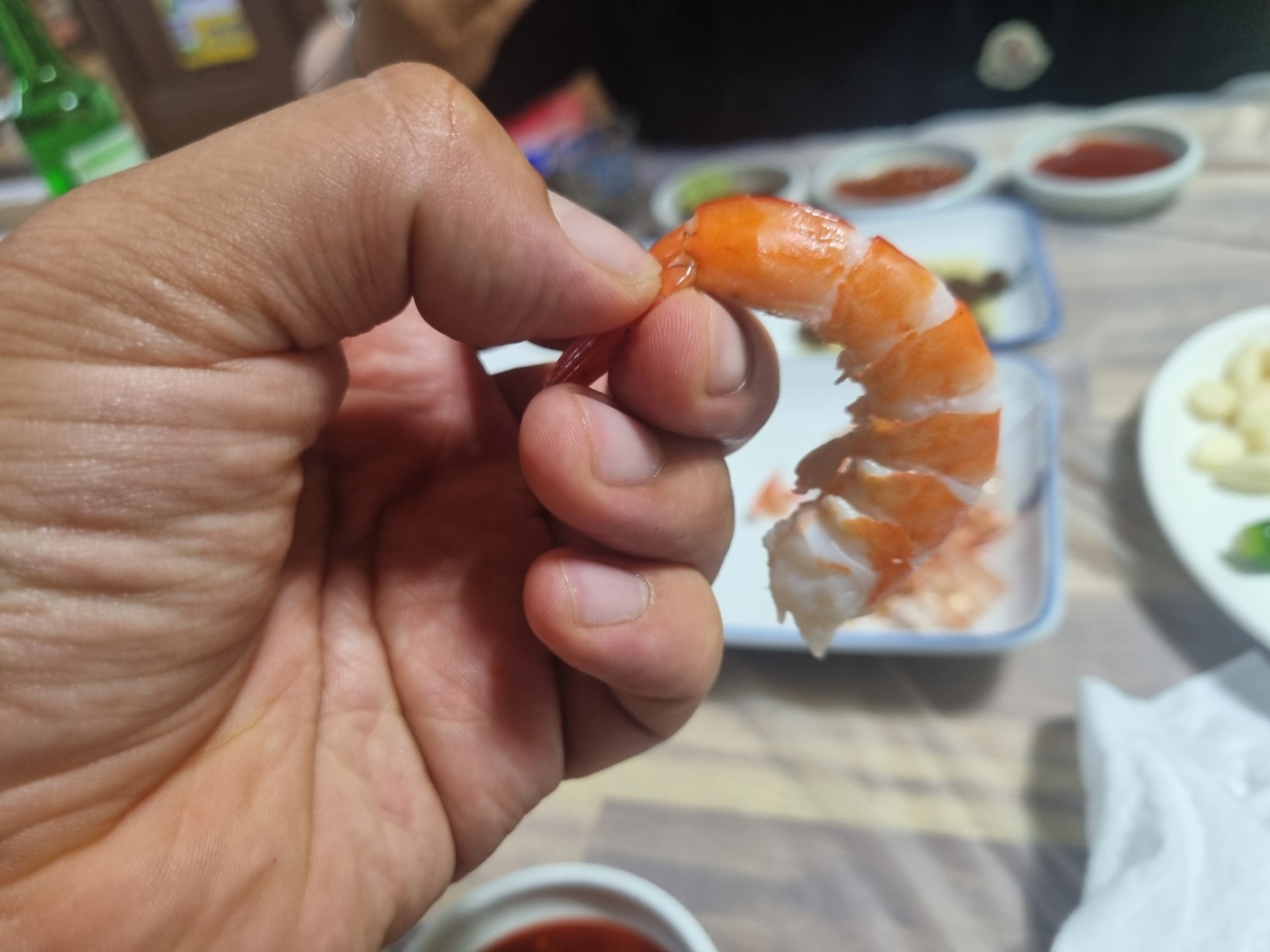 농어, 도다리, 새우 몇개, 멍게랑해서 총 5만원치 가져갔다.