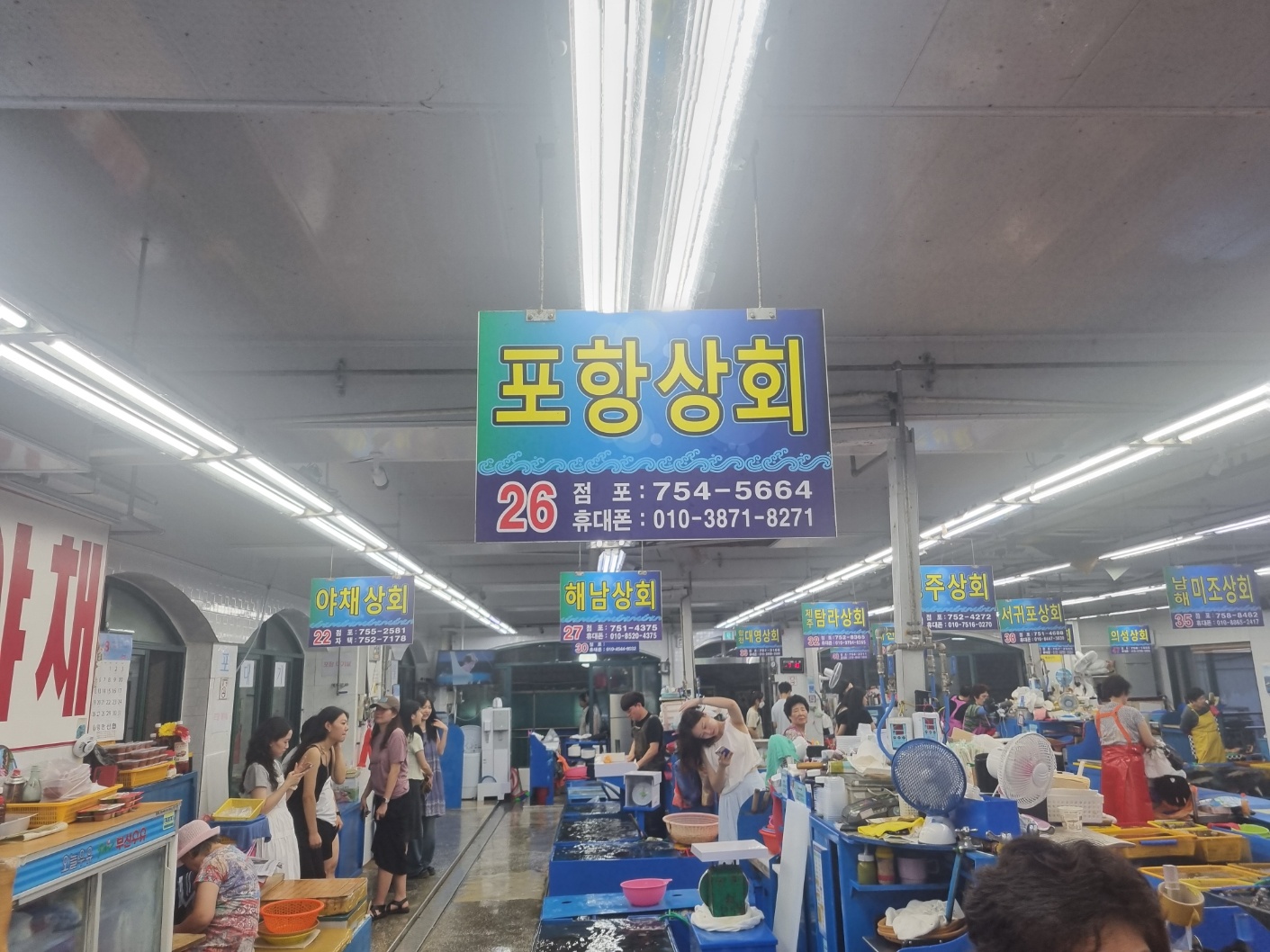 민락회센터 건물안으로 들어와서 친구가 아는 가게가 있다고 해서 " 포항상회"로 들어왔다.