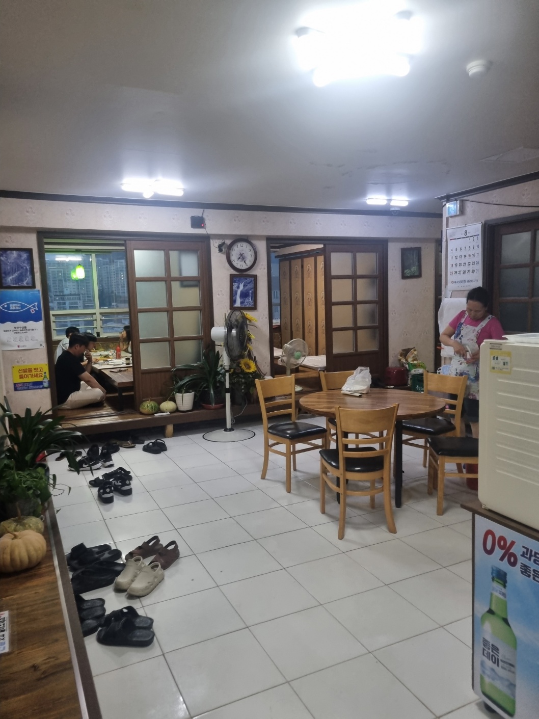 5만원치 고기를 사들고 엘리베이터를 타고 9층에 왕버꾹횟집에 들어갔다.
