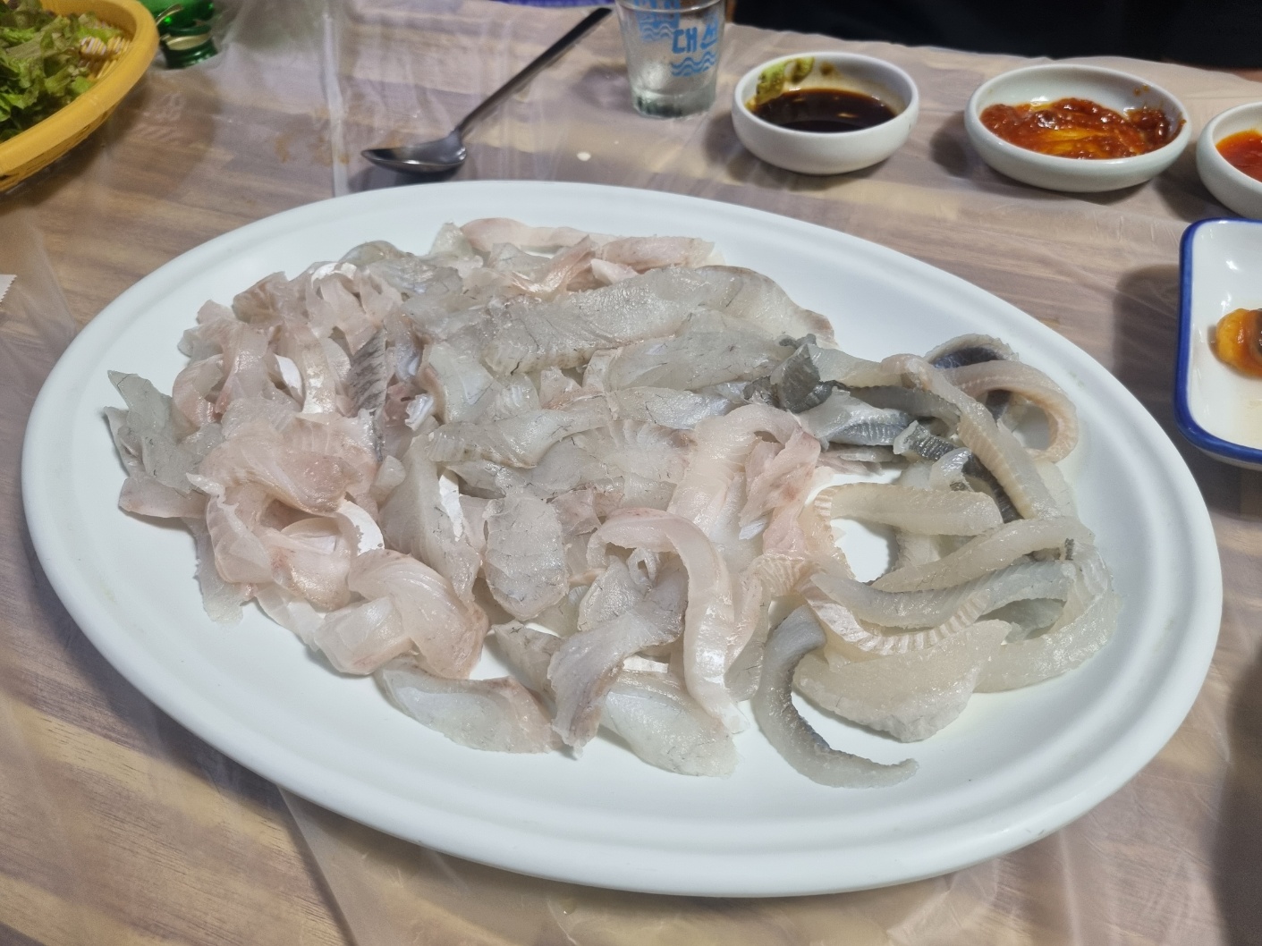 이렇게 우리가 주문한 5만원치 회가 썰어져 세팅이 되었다.