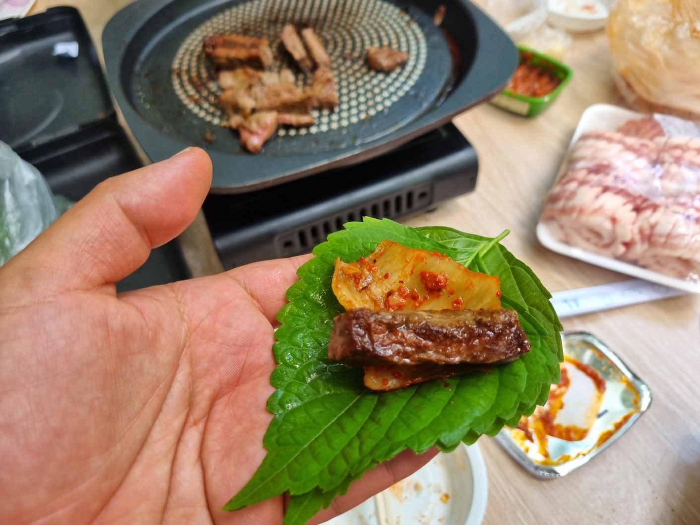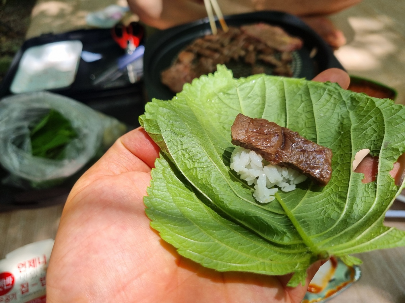 육즙이 입안에 살아있고, 계곡에서 먹어서 그런지 두명에서 두팩 먹고도 또 먹고 싶어졌다. ㅋㅋ