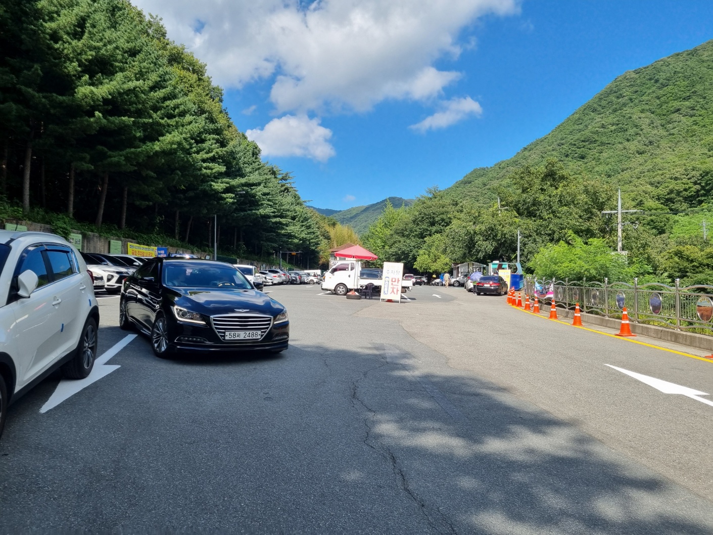 호박소 계곡에 도착하여 주차장에 주차를 하고 나서, ㅋㅋ