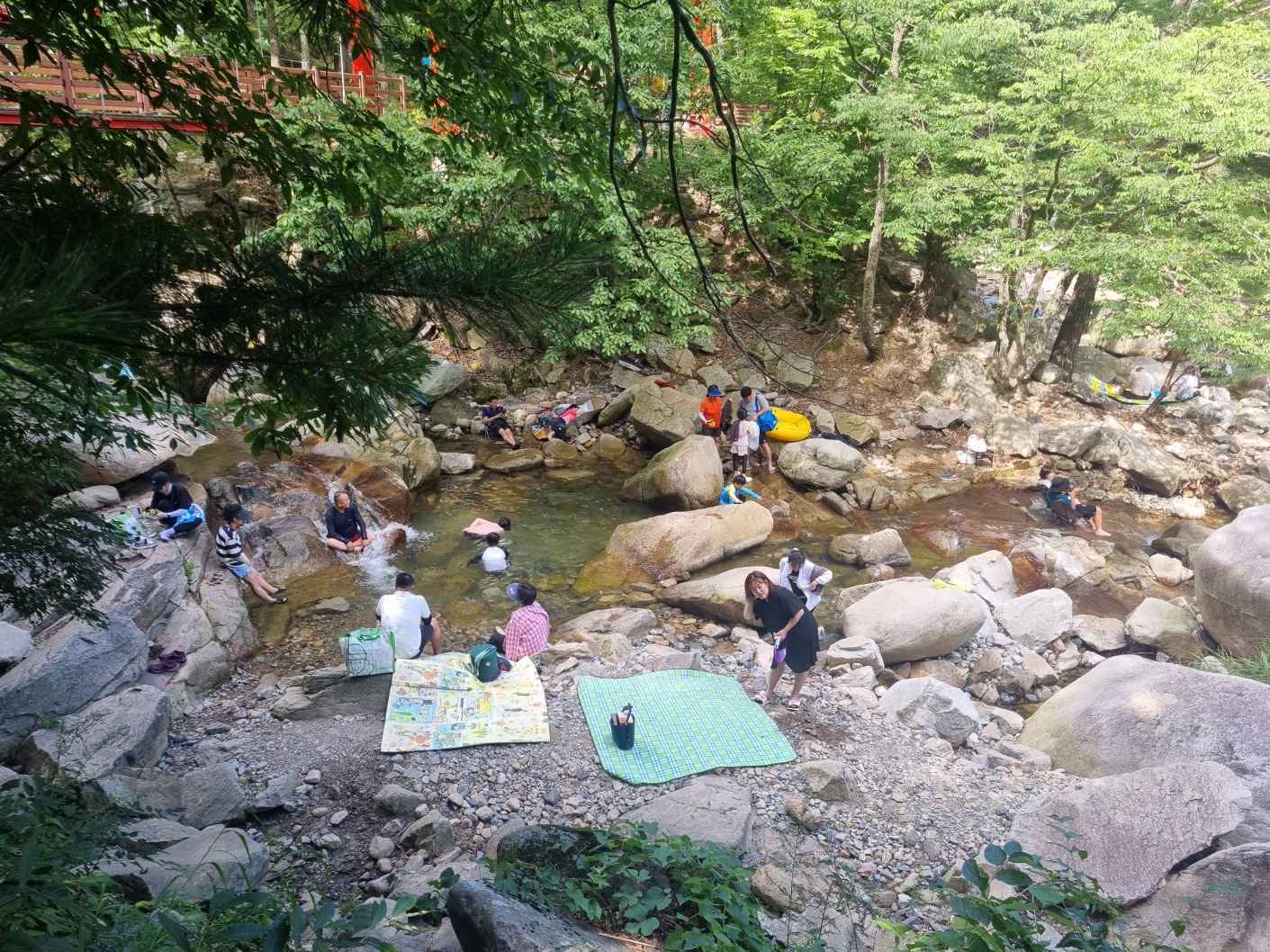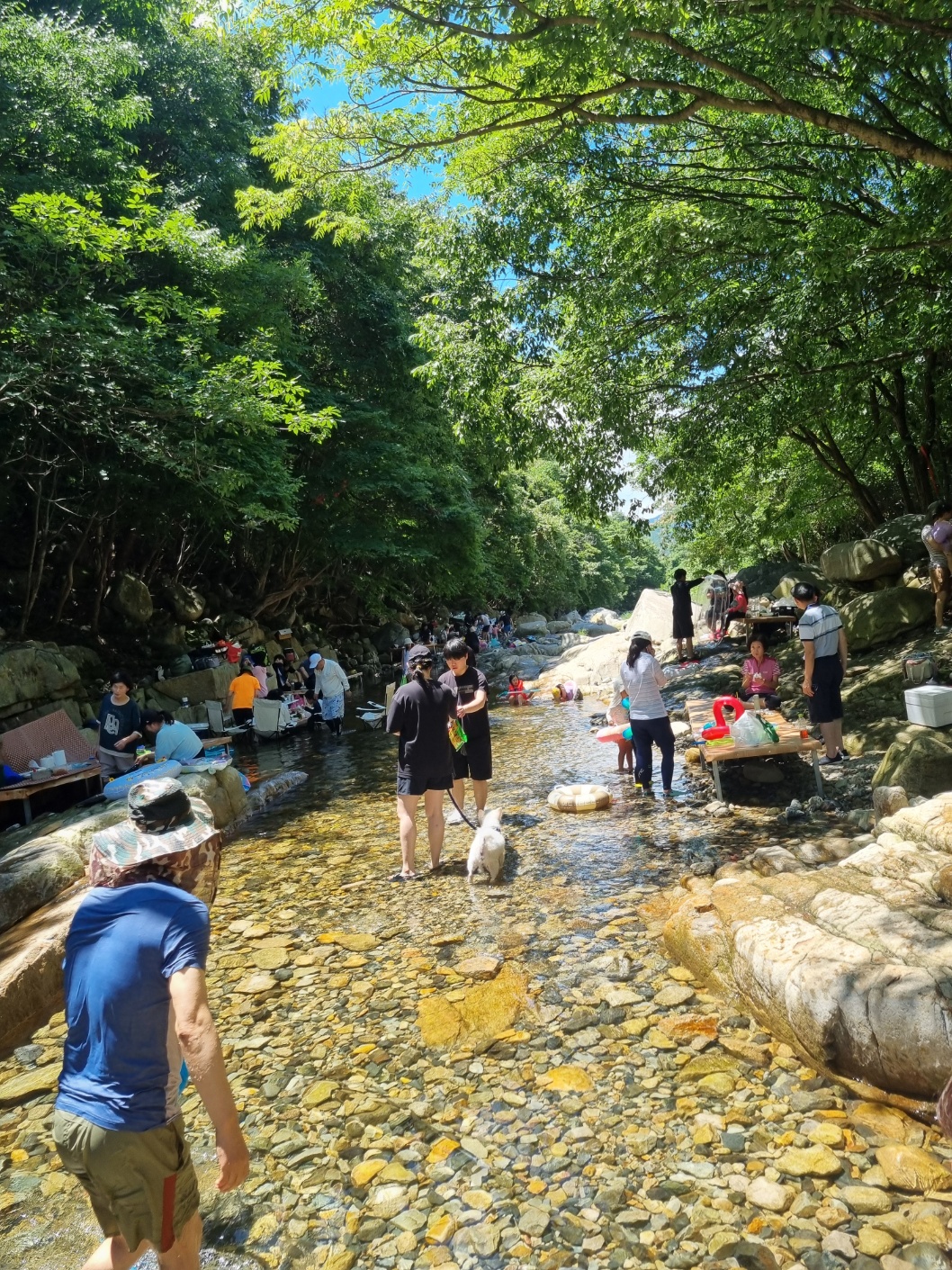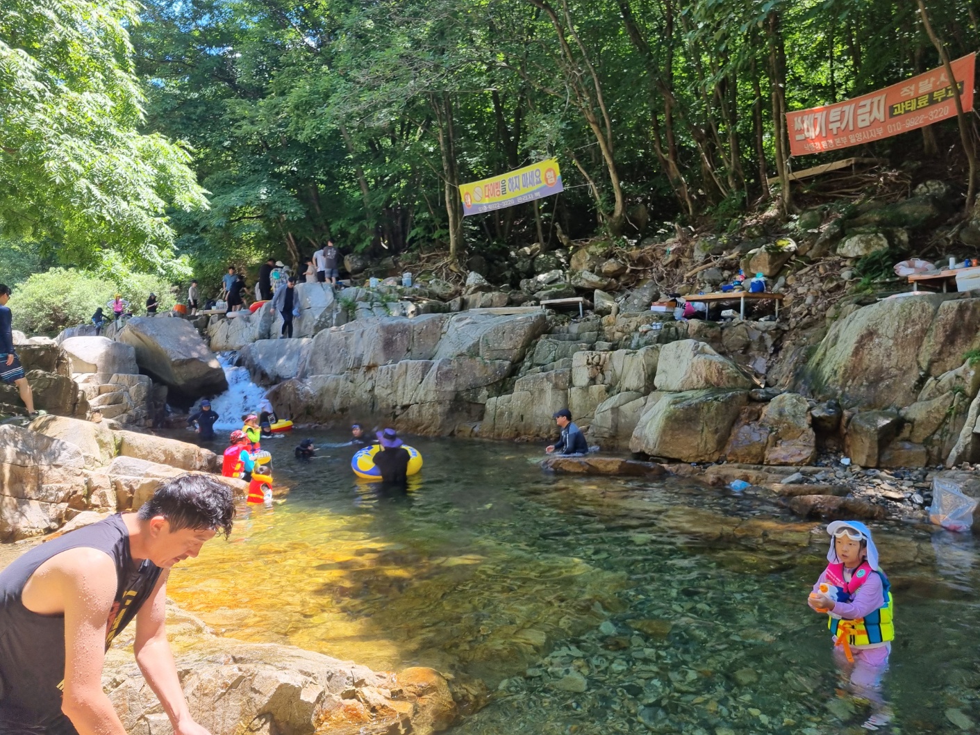 계곡에 들어가보니 많은 평상 자리가 있었고 제가 키가 180cm라 제 목까지 물이 차있었다.