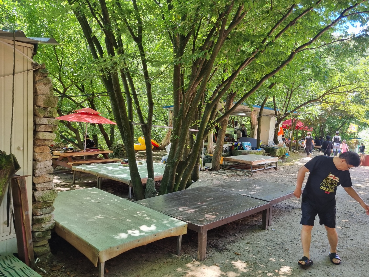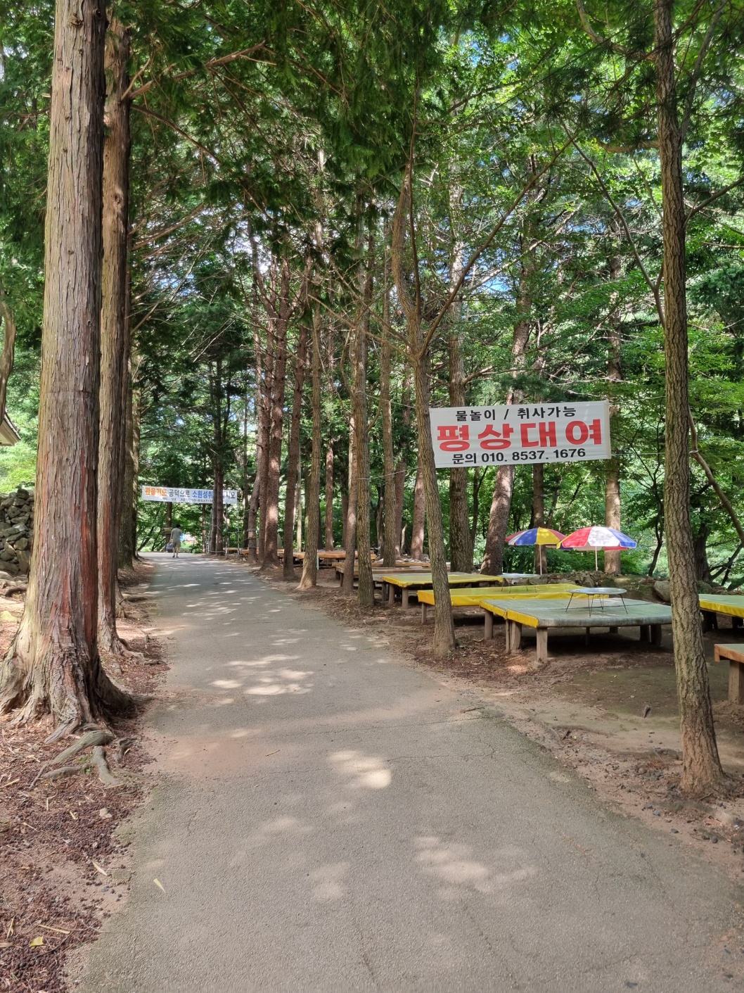 우리는 입구쪽에 평상을 안내 받았고, 나무아래 그늘 자리를 잡게 되었다.