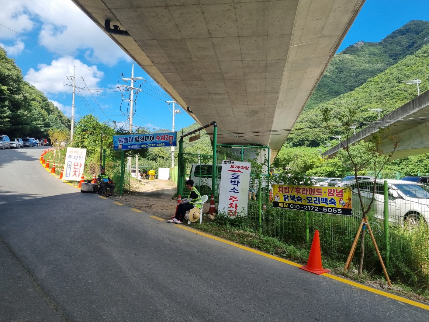 계곡안에 밖에 자리가 많아 당일에 와도 이용이 가능하다.