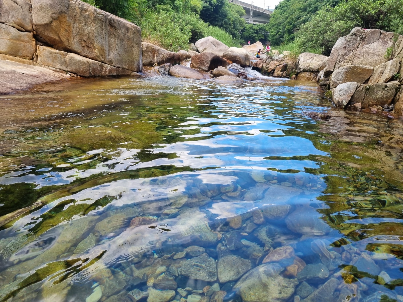 물이 맑기도 하고 조그만한 물고기가 살아있어 아이들의 놀이터로 사용하기 좋았다.