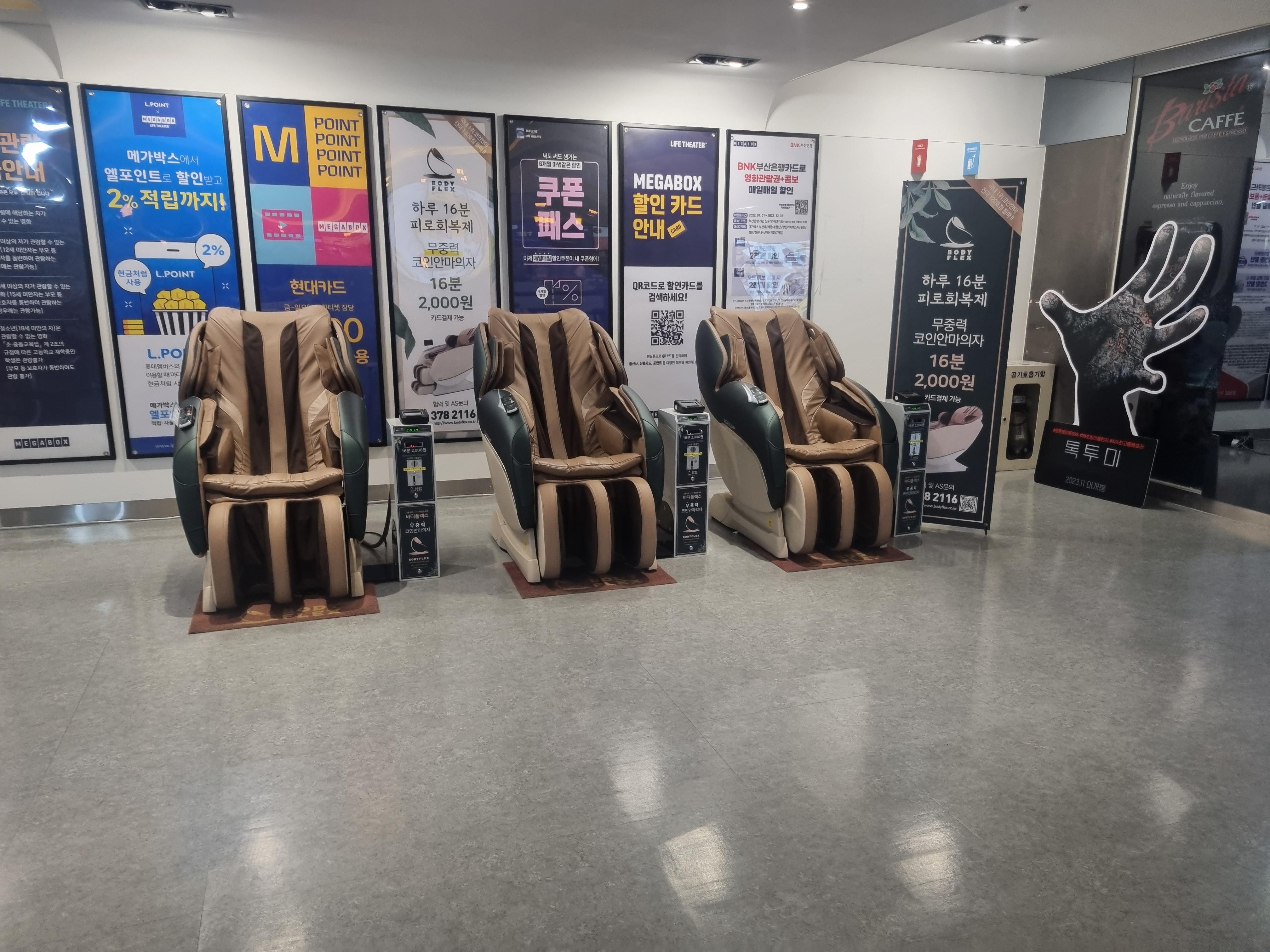 티케팅 하는곳 옆에는 안마의자가 있었고