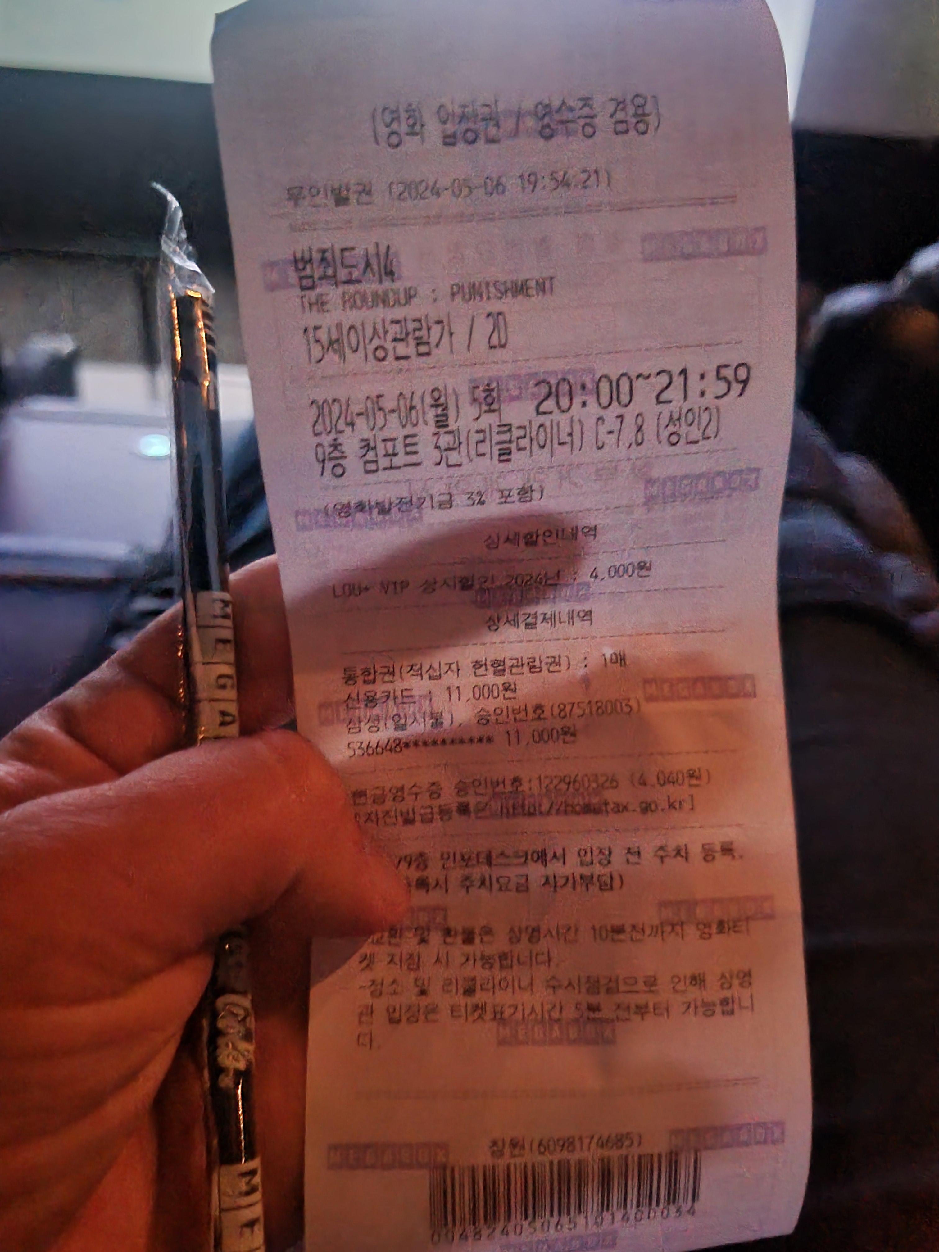 공휴일을 맞아 친구랑 같이 범죄도시4 영화를 보러갔습니다