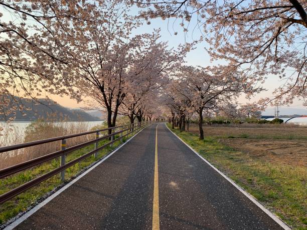 경포호는 고요한 물과 경치 좋은 산책로로 유명하지만, 4월 초순에서 중순에 벚꽃이 절정에 달하면 더욱 매혹적이 됩니다. 4.3km의 호숫가 도로는 벚꽃으로 아름답게 장식되어 있어 여유로운 산책, 자전거 타기, 로맨틱한 데이트에 완벽한 장소입니다. 방문객은 고요한 호수에 비치는 벚꽃을 감상하며 이곳에서만 볼 수 있는 몽환적인 분위기를 느낄 수 있습니다.