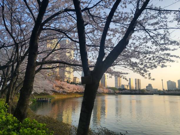 그러나 석촌호수를 진정으로 특별하게 만드는 것은 매년 봄마다 피는 벚꽃의 웅장한 광경입니다. 이 호수는 약 1,000그루의 벚꽃나무로 둘러싸여 있으며, 4월 초순경에 만개합니다. 벚꽃은 눈길을 끄는 광경으로, 부드러운 꽃잎이 푸른 하늘과 대조를 이루고 호수 표면에 반사되어 고요함과 아름다움의 이미지를 만들어냅니다. 석촌호수의 벚꽃 풍경은 종종 서울에서 가장 아름다운 풍경 중 하나로 묘사되며, 봄의 아름다움을 즐기고자 하는 사진작가, 자연 애호가, 로맨틱한 커플을 끌어들입니다.