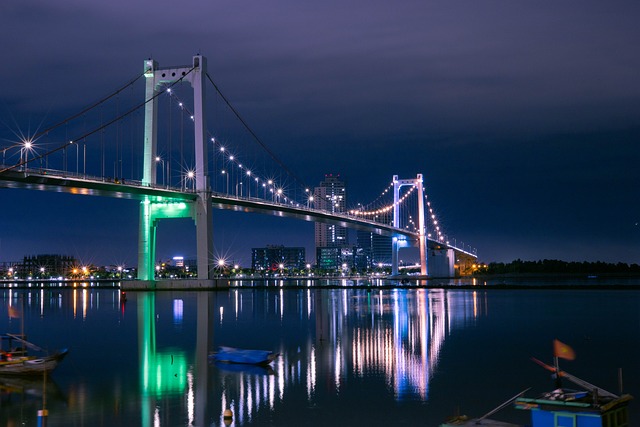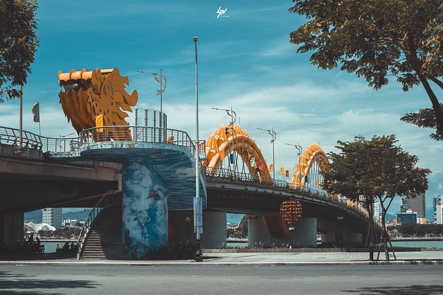한강에 걸쳐 있는 상징적인 드래곤 브리지는 거대 도시의 예술적 정체성을 반영하는 초현대적인 건축 현상입니다. 밤에는 다양한 LED 조명으로 땅에 활기를 불어넣고 주말에는 불을 뿜고 물을 뿌리는 화려한 쇼를 볼 수 있습니다.