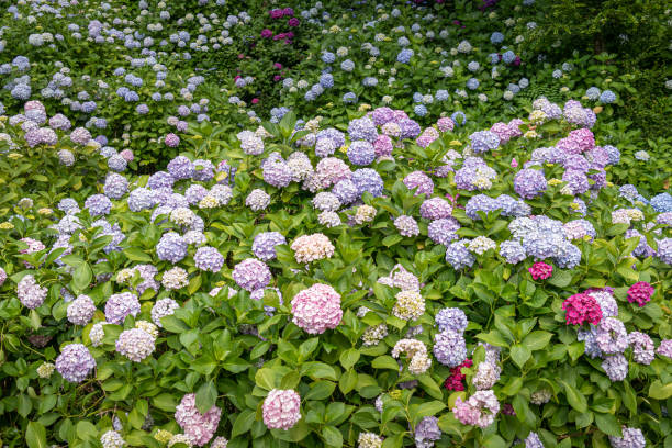 수국은 일반적으로 6월 중순부터 개화하여 7월 초에 만개합니다. 특히 태종대 일대는 해안 절벽을 따라 수국이 피어나며, '수국길'로 불리는 산책로가 형성됩니다.