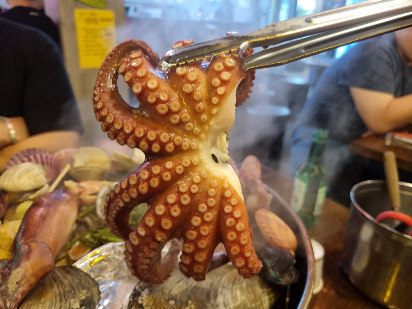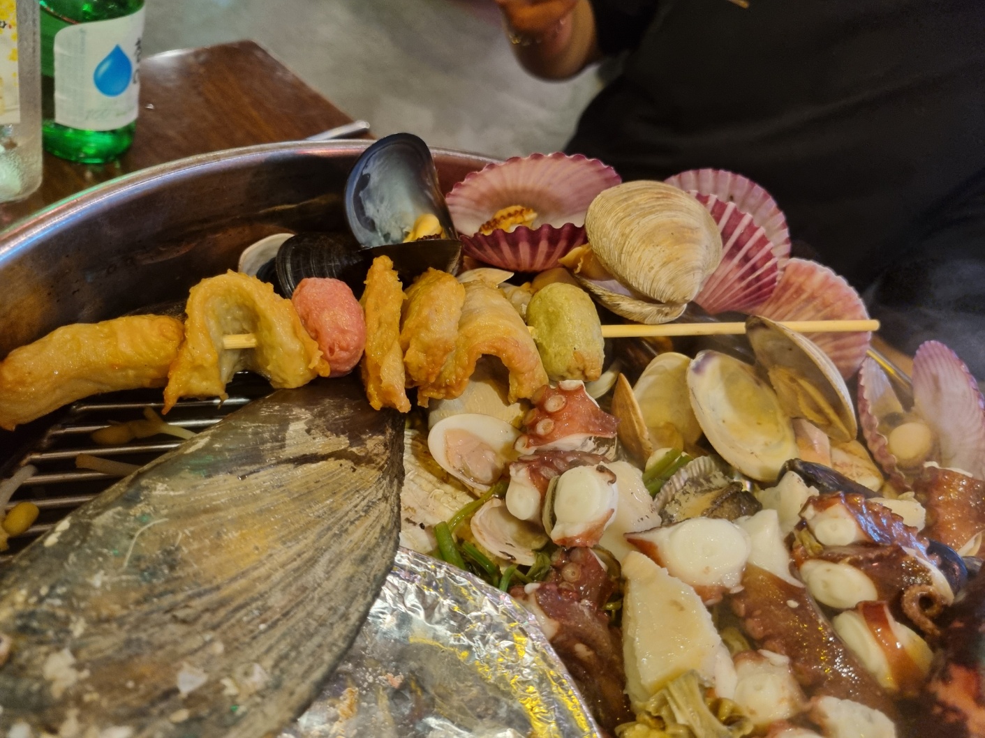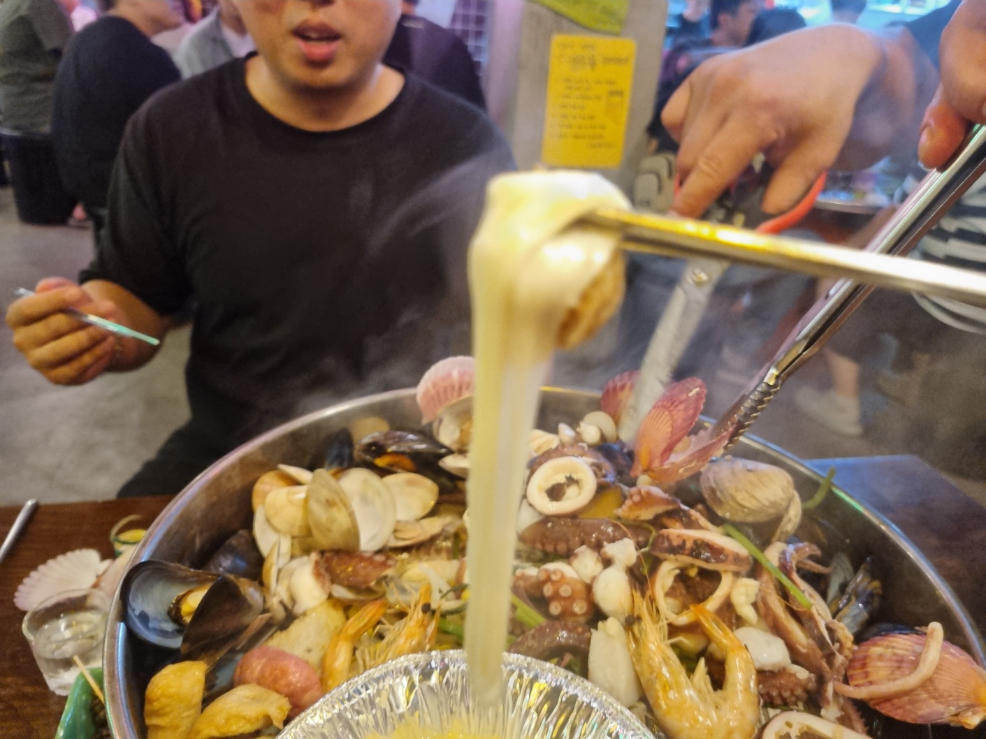 조개찜 안에는 문어, 오징어, 키조개, 가리비, 홍합, 전복등 여러가지 해산물이 들어있다.