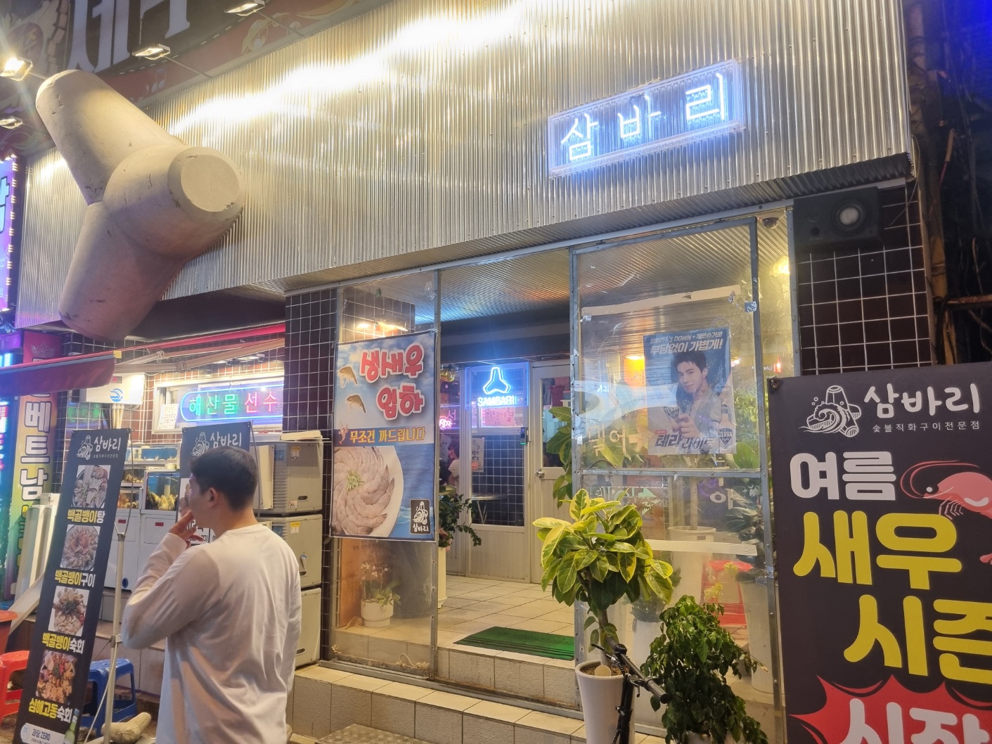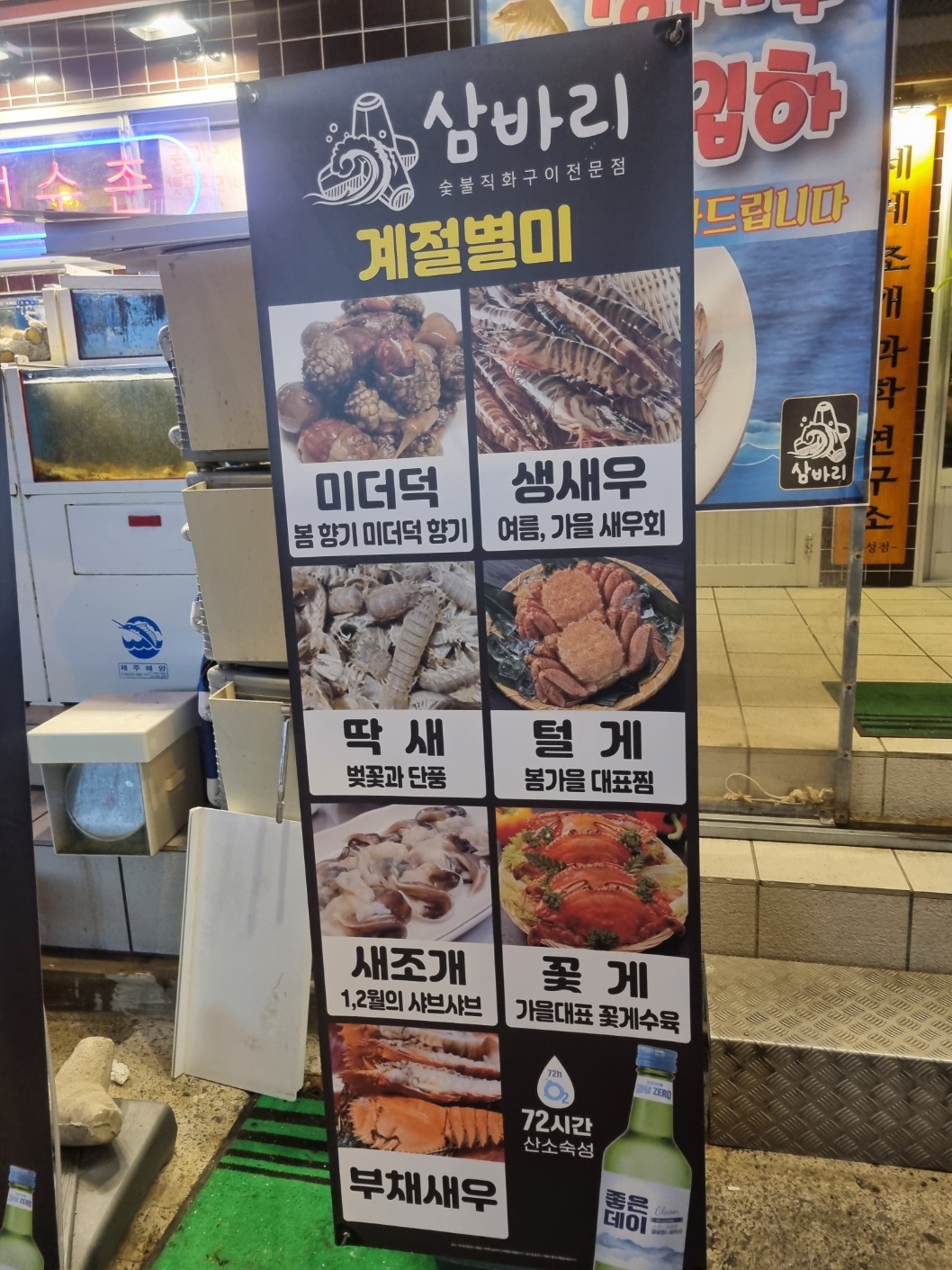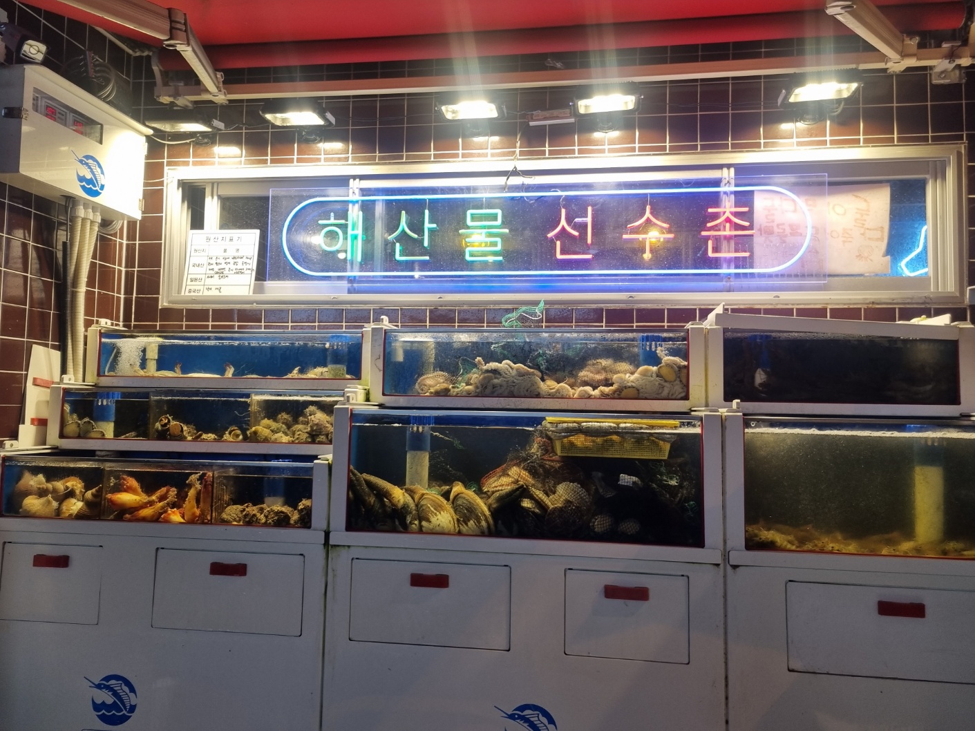 그 앞에는 다양하고 싱싱한 해산물들이 배치되어 있었다.
