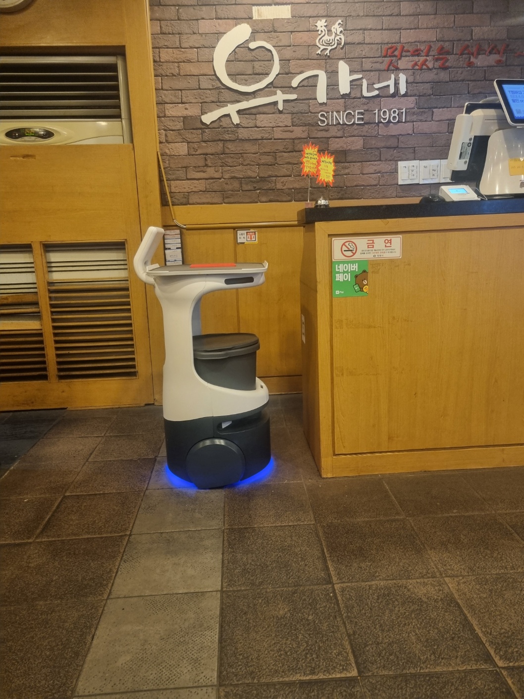 카운터에는 서빙봇이 자리를 잡고 있네요