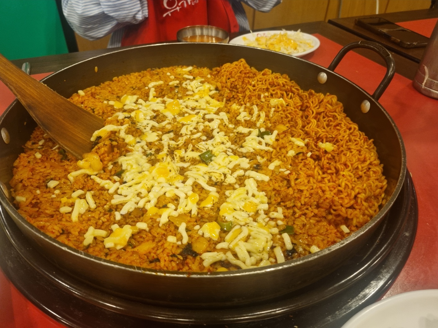 이제 치즈 복음밥 4인분과 라면사리를 시켰다.